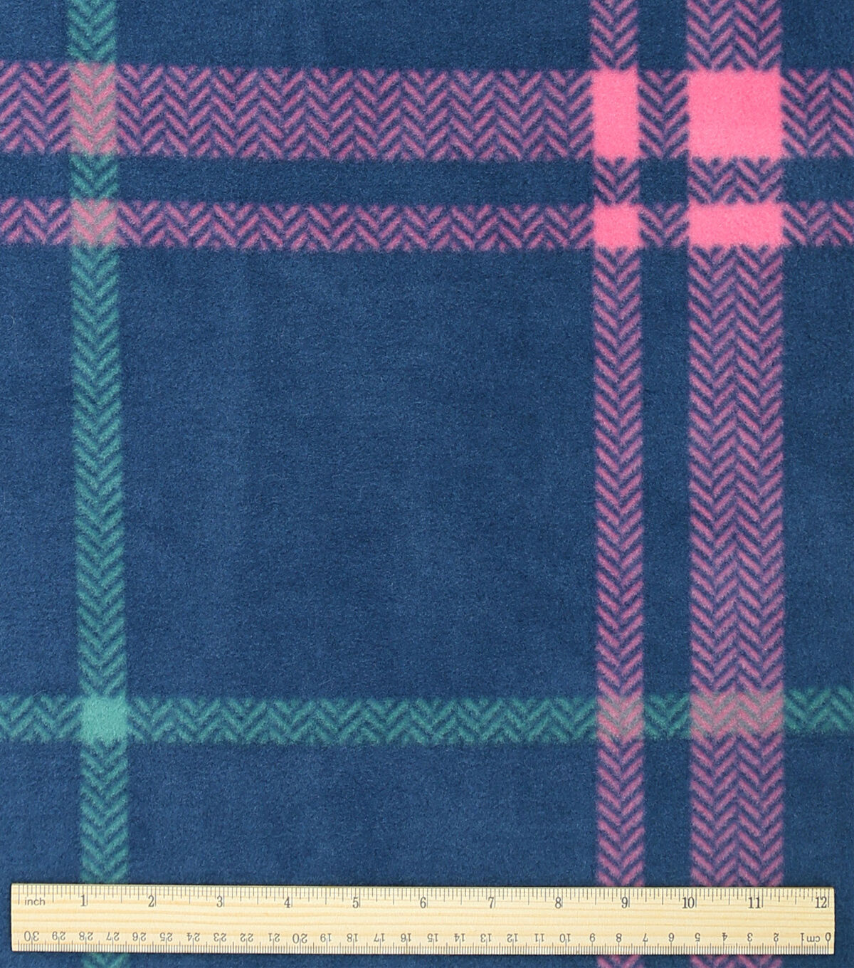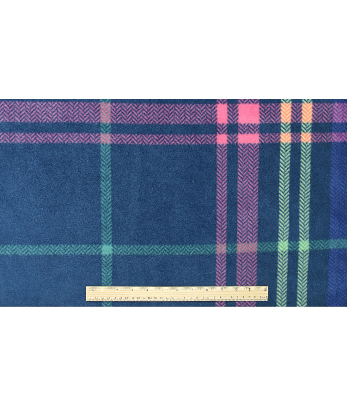 Neon & Pink Plaid on Blue Anti Pill Fleece Fabric