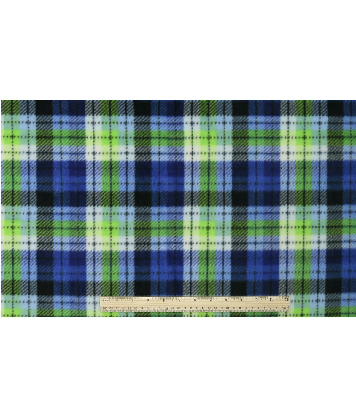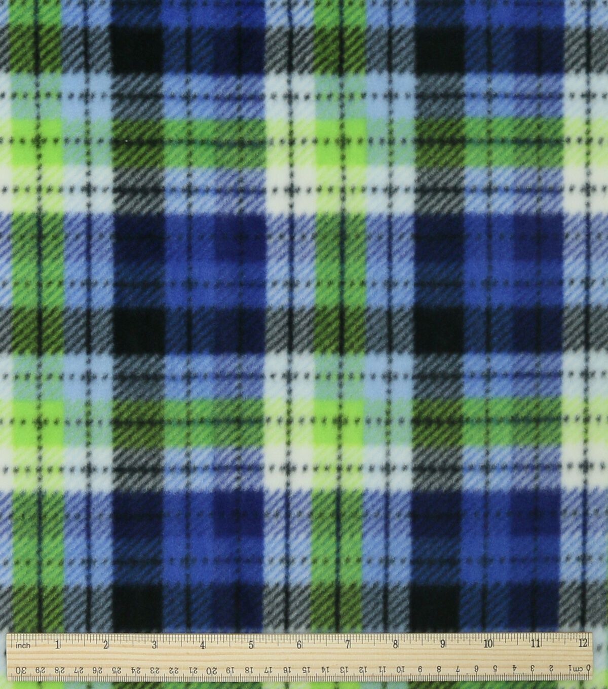 Green & Blue Vertical Plaid Anti Pill Fleece Fabric