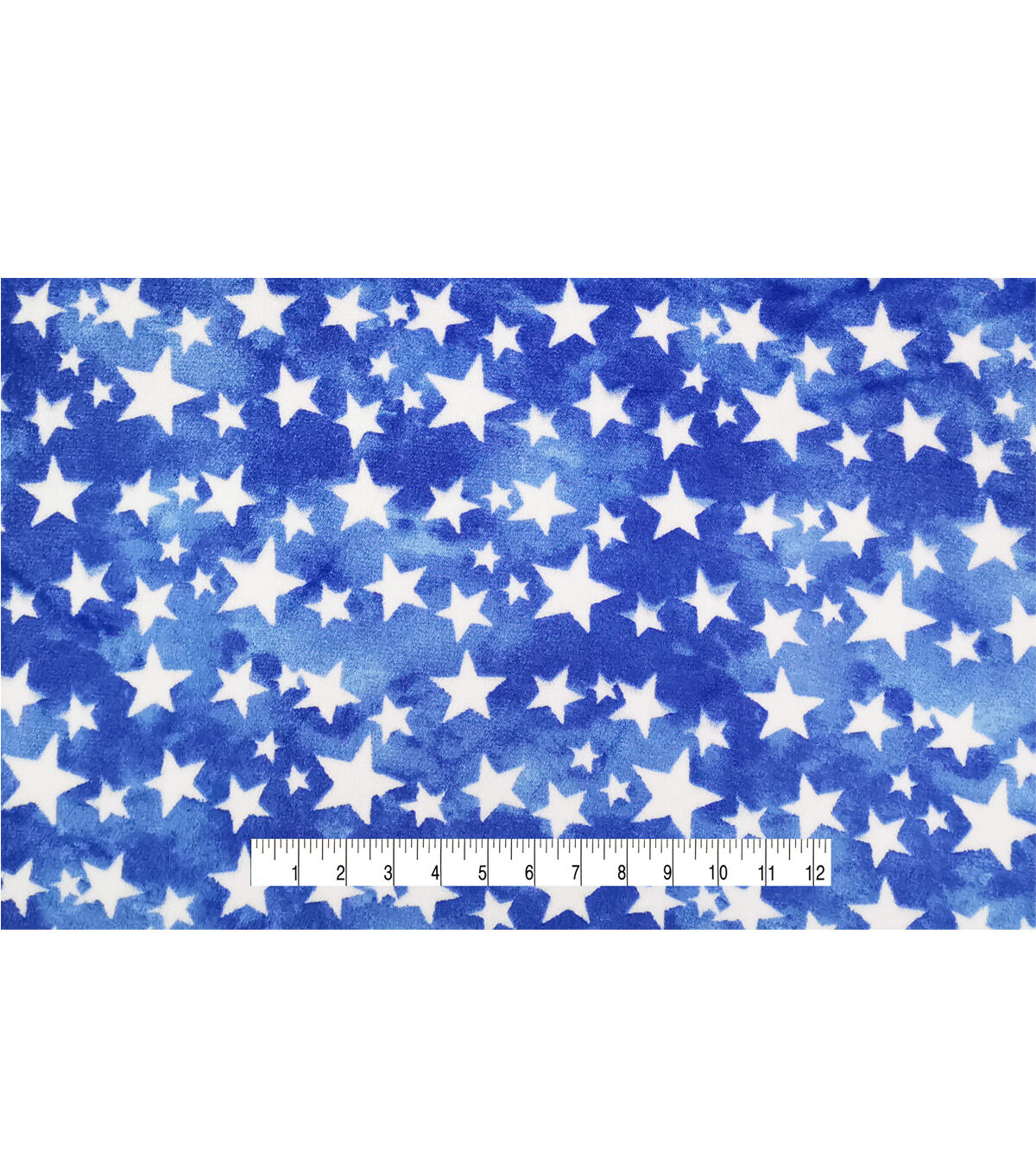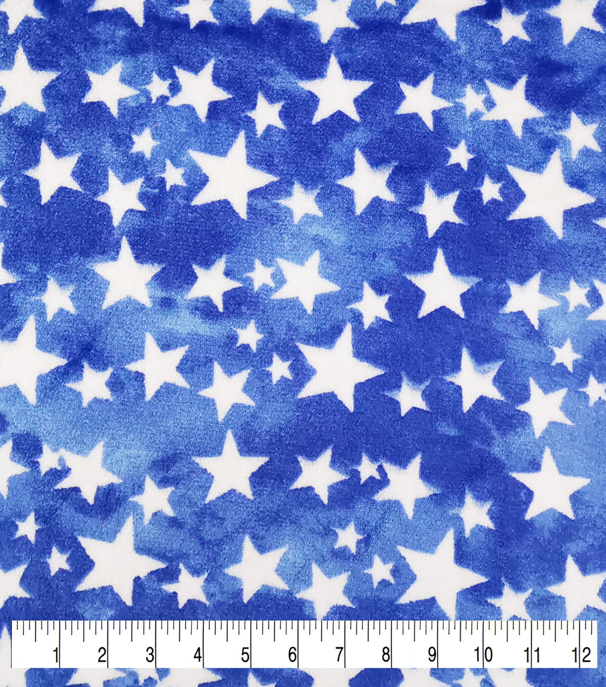 Sew Lush Stars on Blue Tie Dye Fleece Fabric
