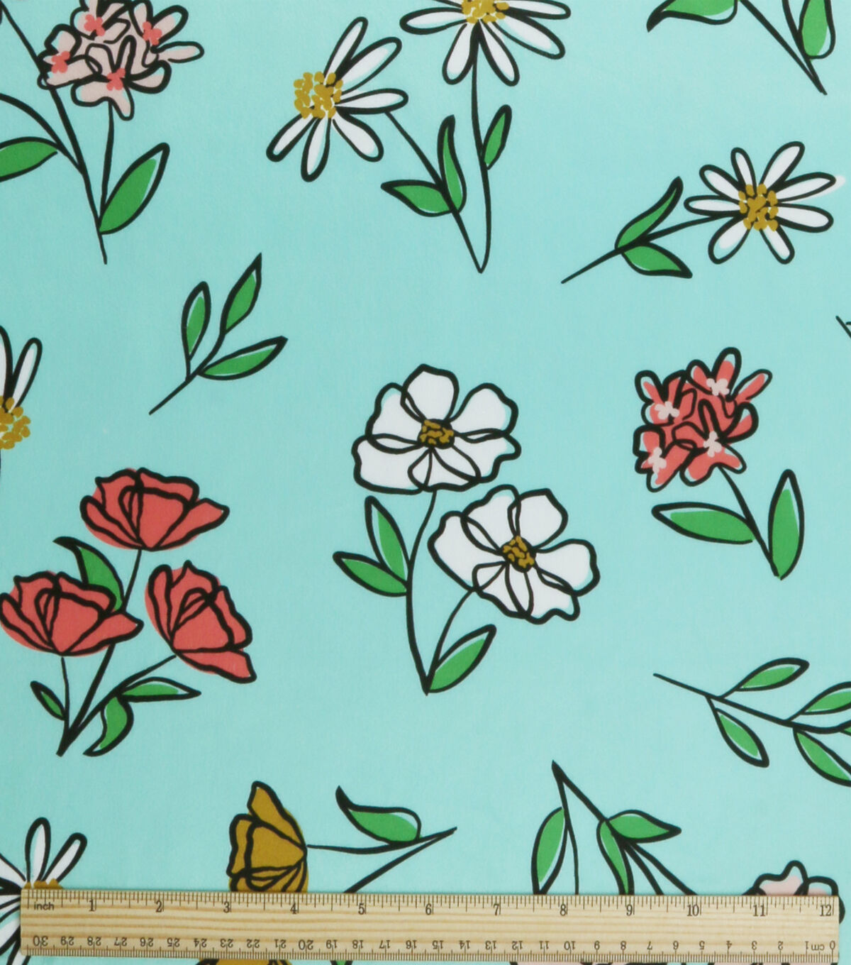 Green Sketched Floral Soft & Minky Fleece Fabric