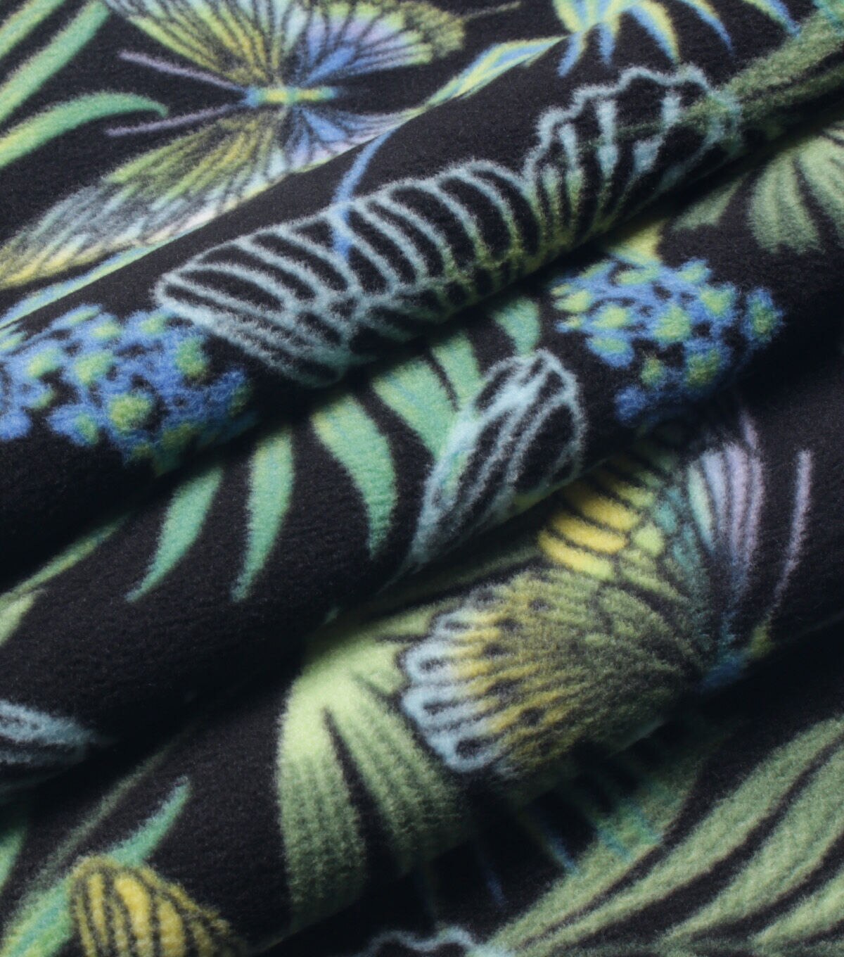 Palm & Butterfly on Black Anti Pill Plush Fleece Fabric