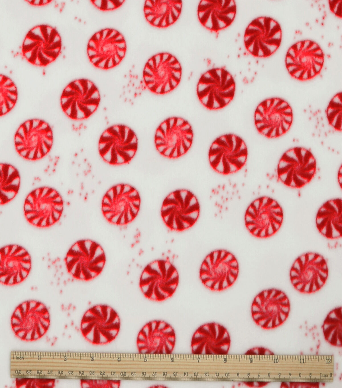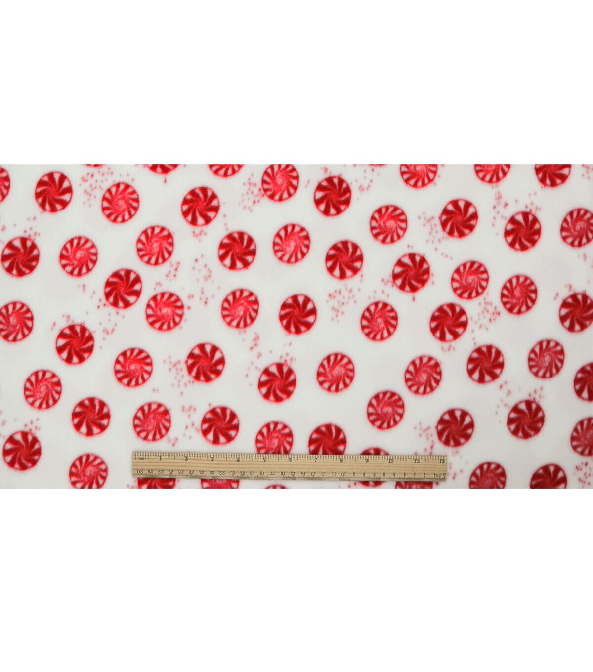 Red Peppermints on White Anti Pill Fleece Fabric