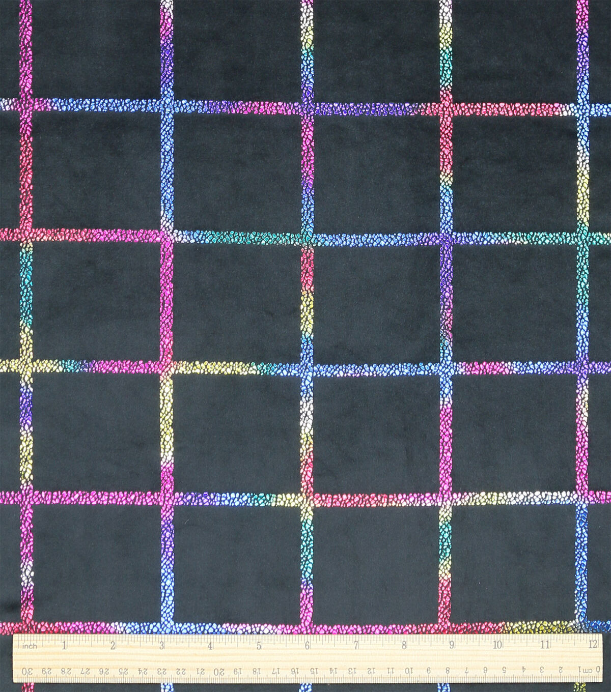 Rainbow Pride Grid on Black Pure Plush Fleece Fabric