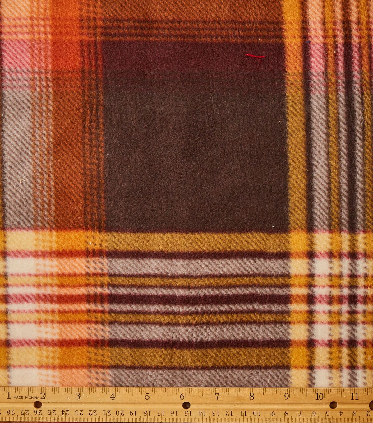 Eddie Bauer Orange & Brown Plaid Anti Pill Fleece Fabric