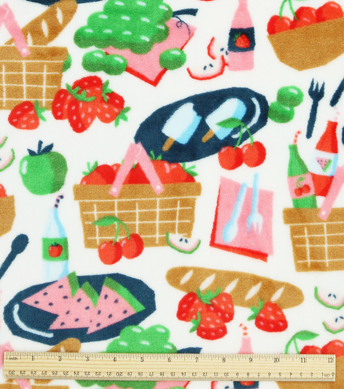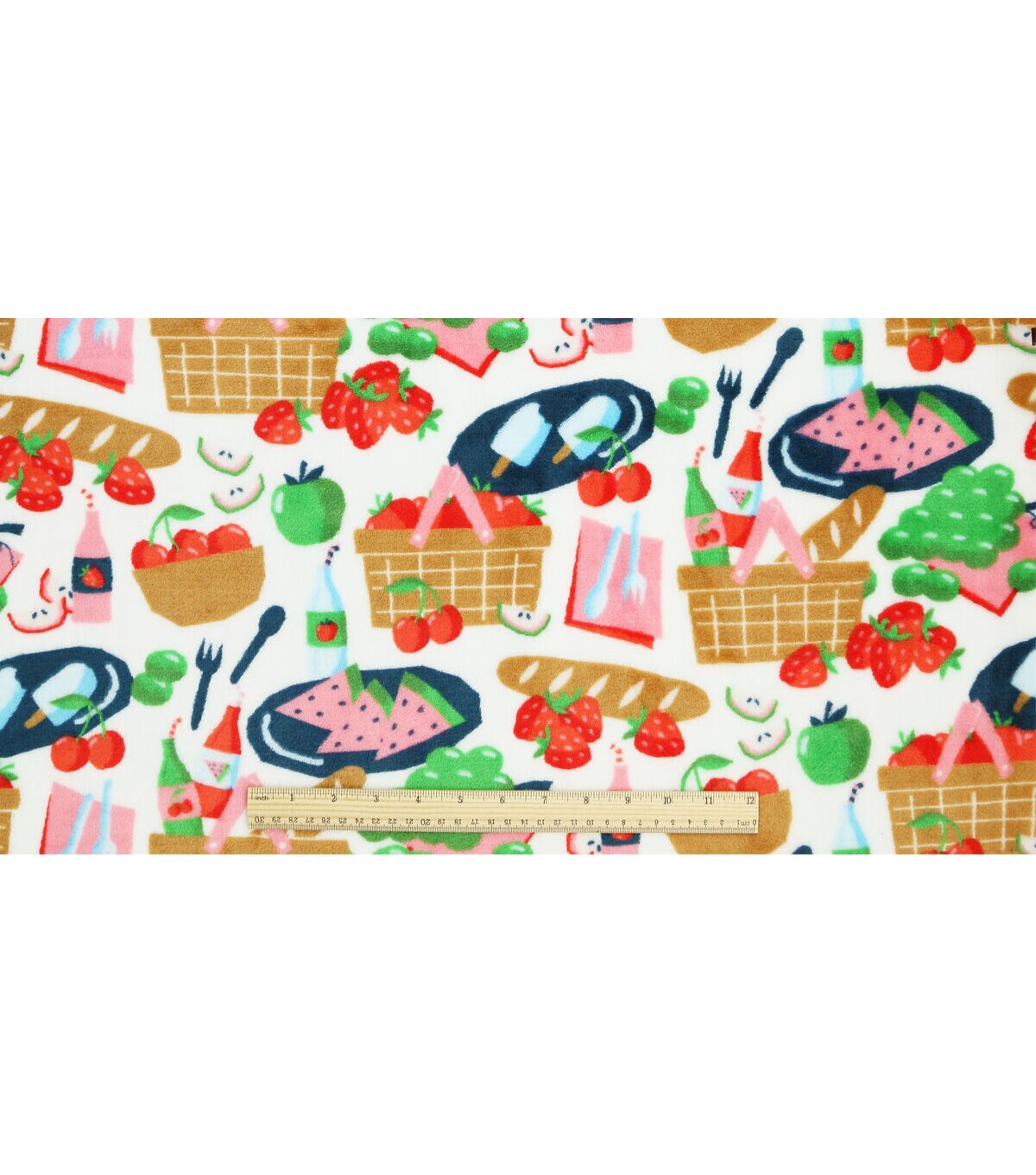 Picnic Scene On White Sew Lush Fleece Fabric