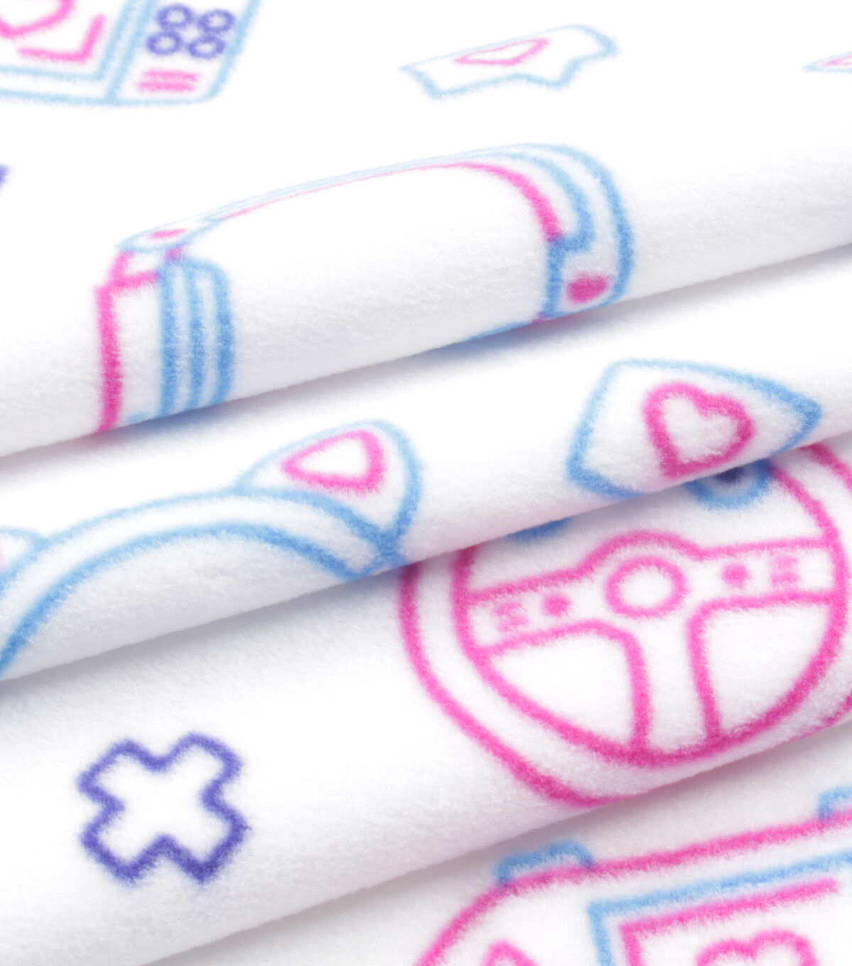 Pink Gaming Accessories on White Anti Pill Fleece Fabric