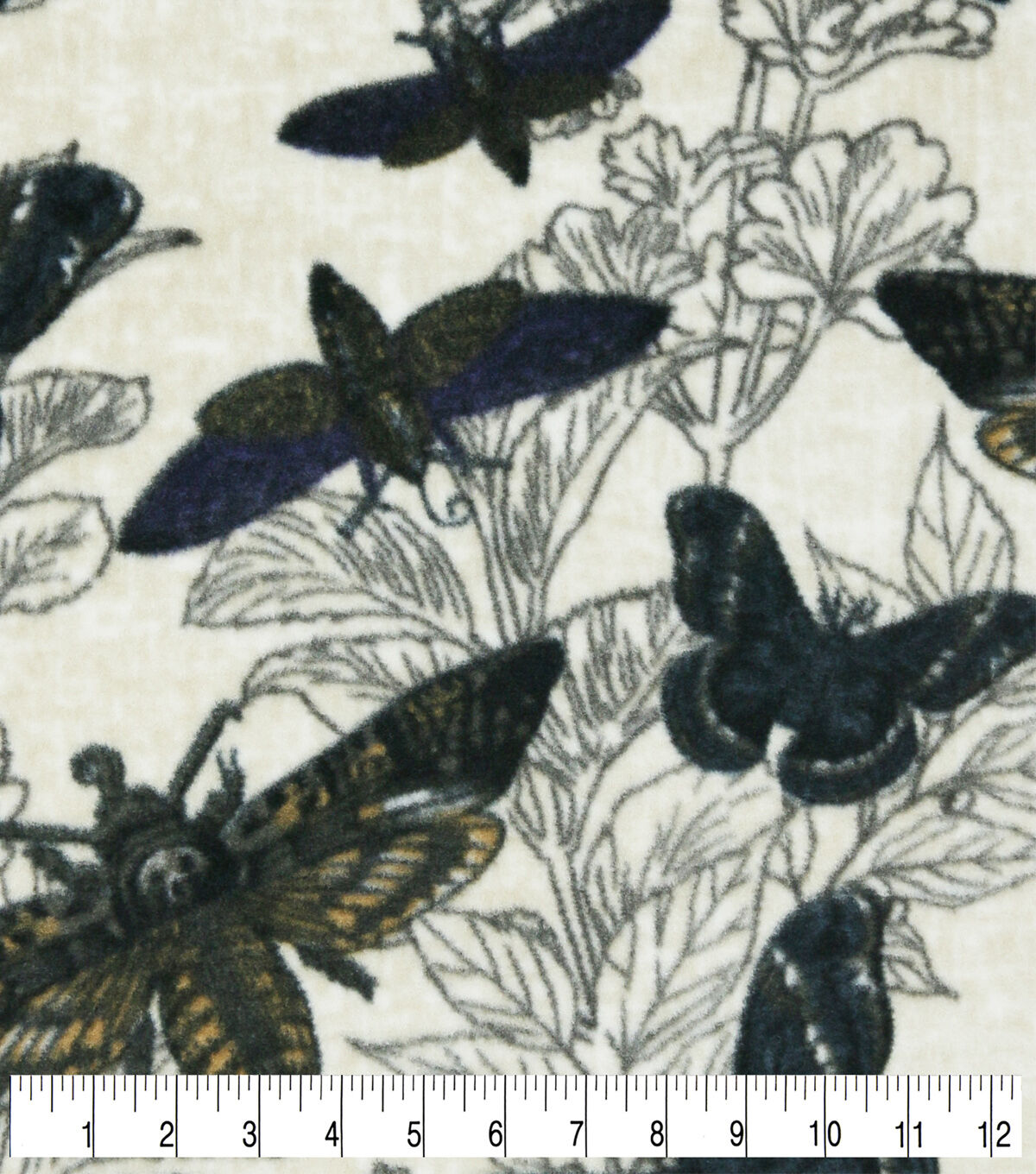 Black Butterflies & Moths Anti Pill Fleece Fabric
