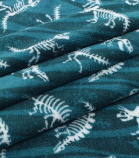 Dinosaur Fossils on Blue Anti Pill Fleece Fabric