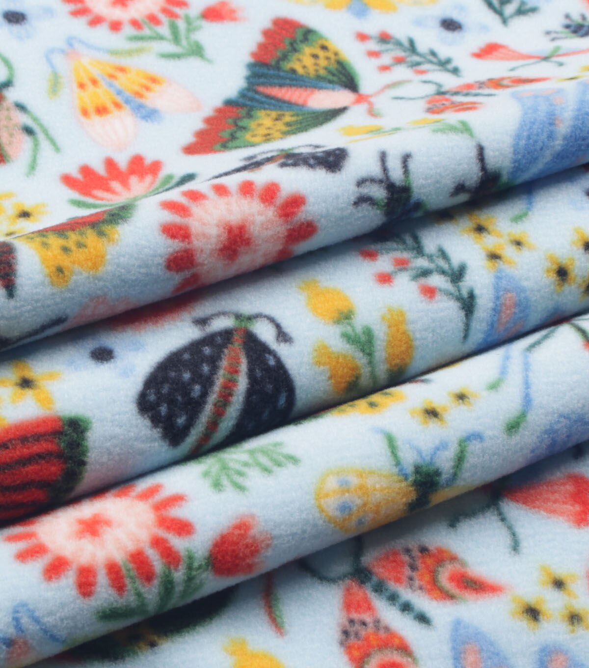 Bright Bugs on Blue Anti Pill Plush Fleece Fabric
