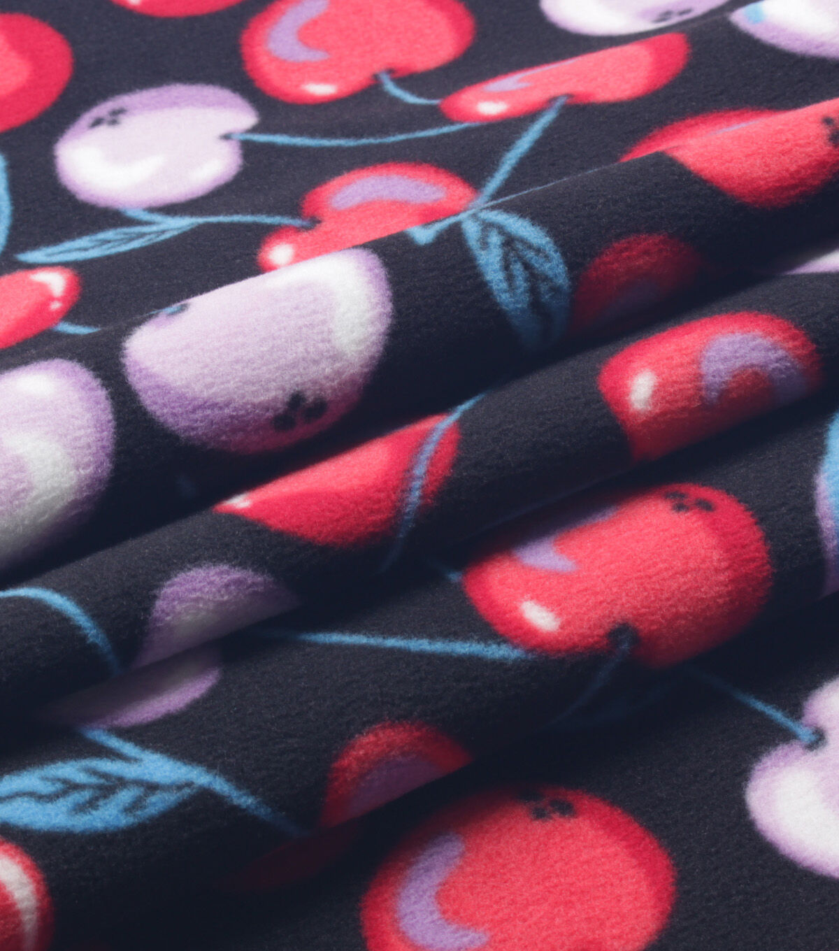 Cherries on Black Anti Pill Plush Fleece Fabric