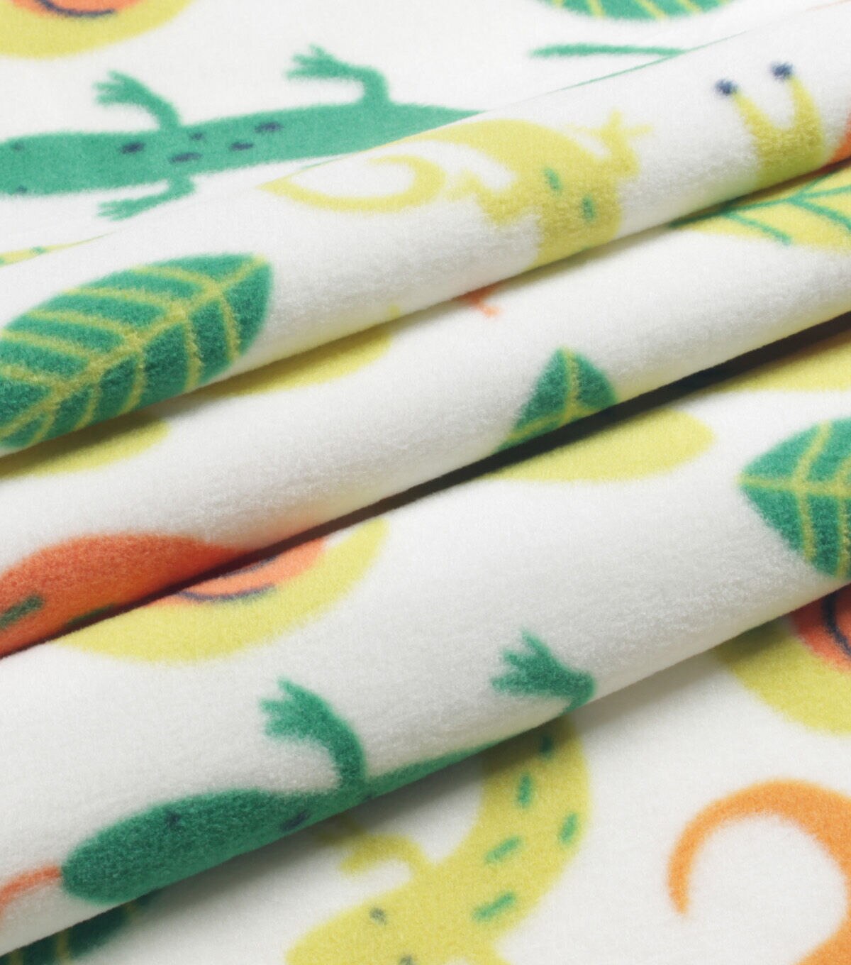 Multicolor Reptiles on White Anti Pill Fleece Fabric by POP!