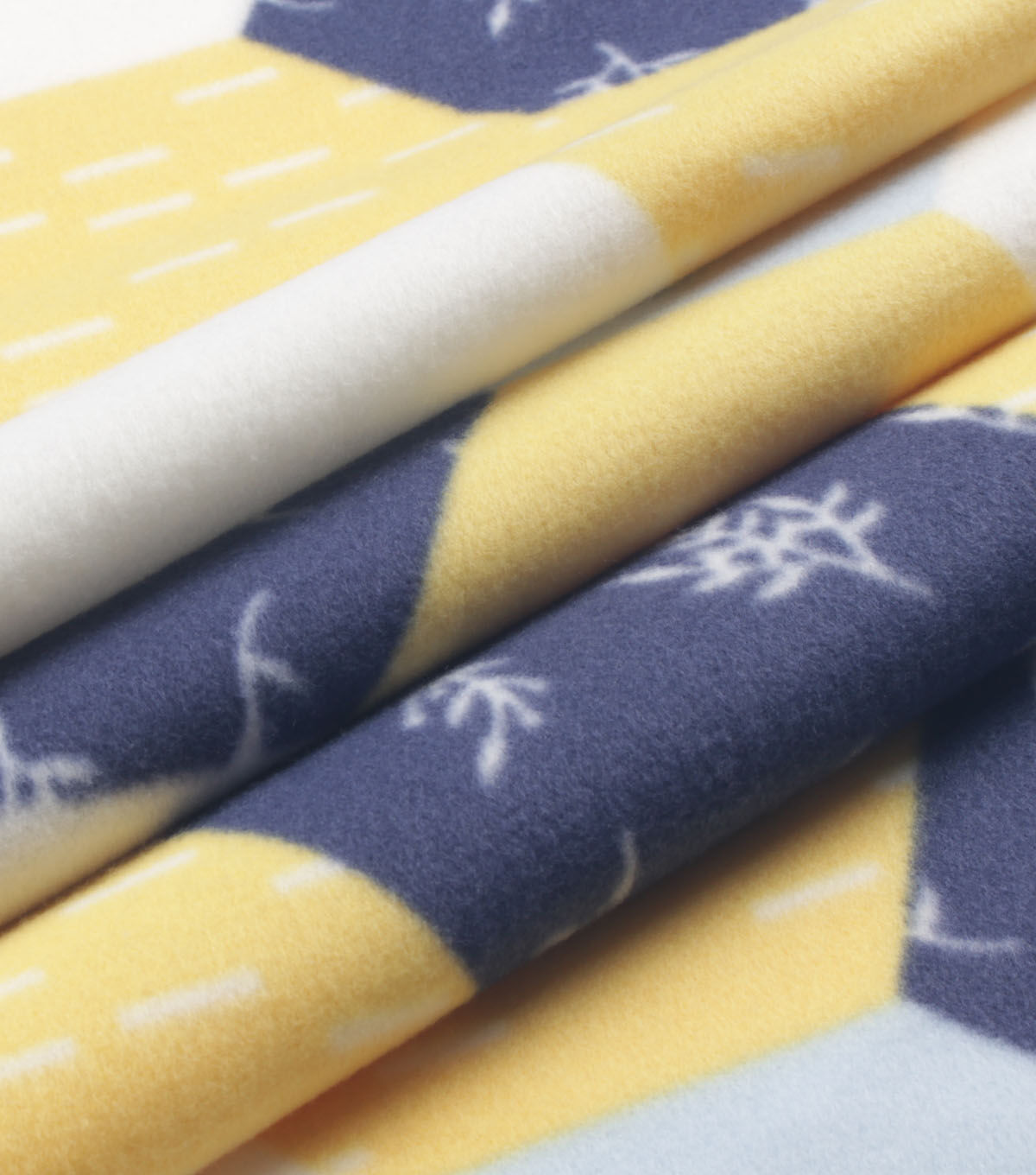 Leaves on Blue Anti Pill Plush Fleece Fabric