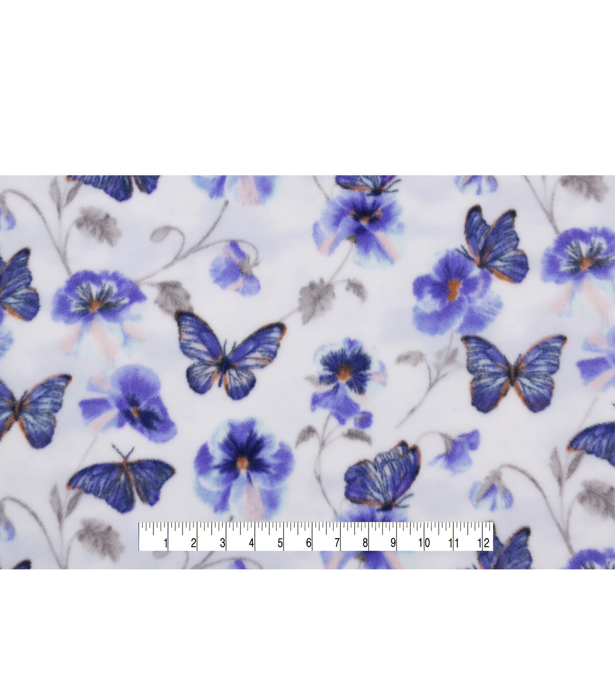 Purple Butterflies & Floral Anti Pill Fleece Fabric