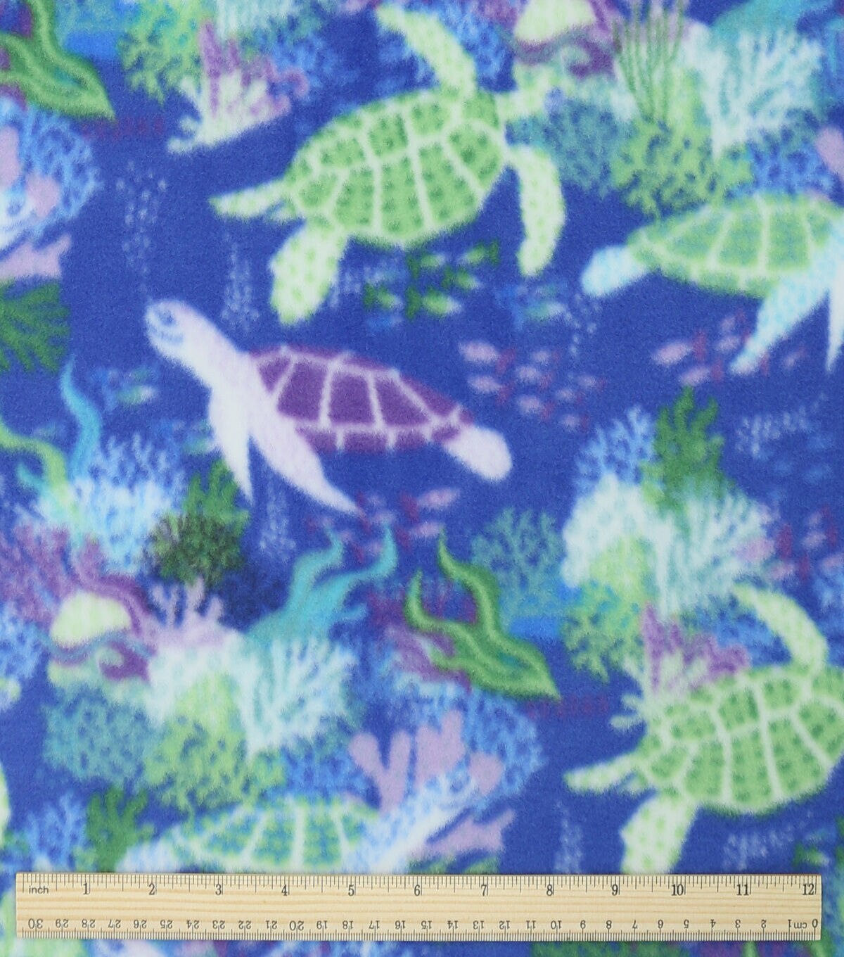 Swimming Turtles on Blue Anti Pill Fleece Fabric