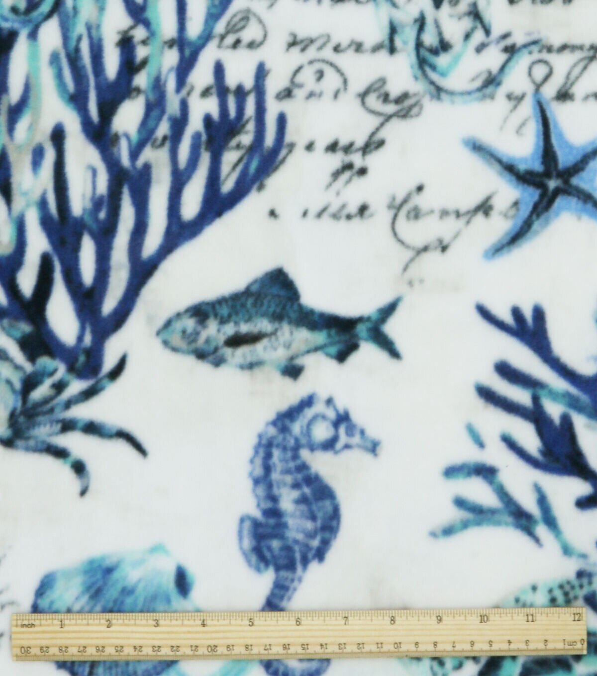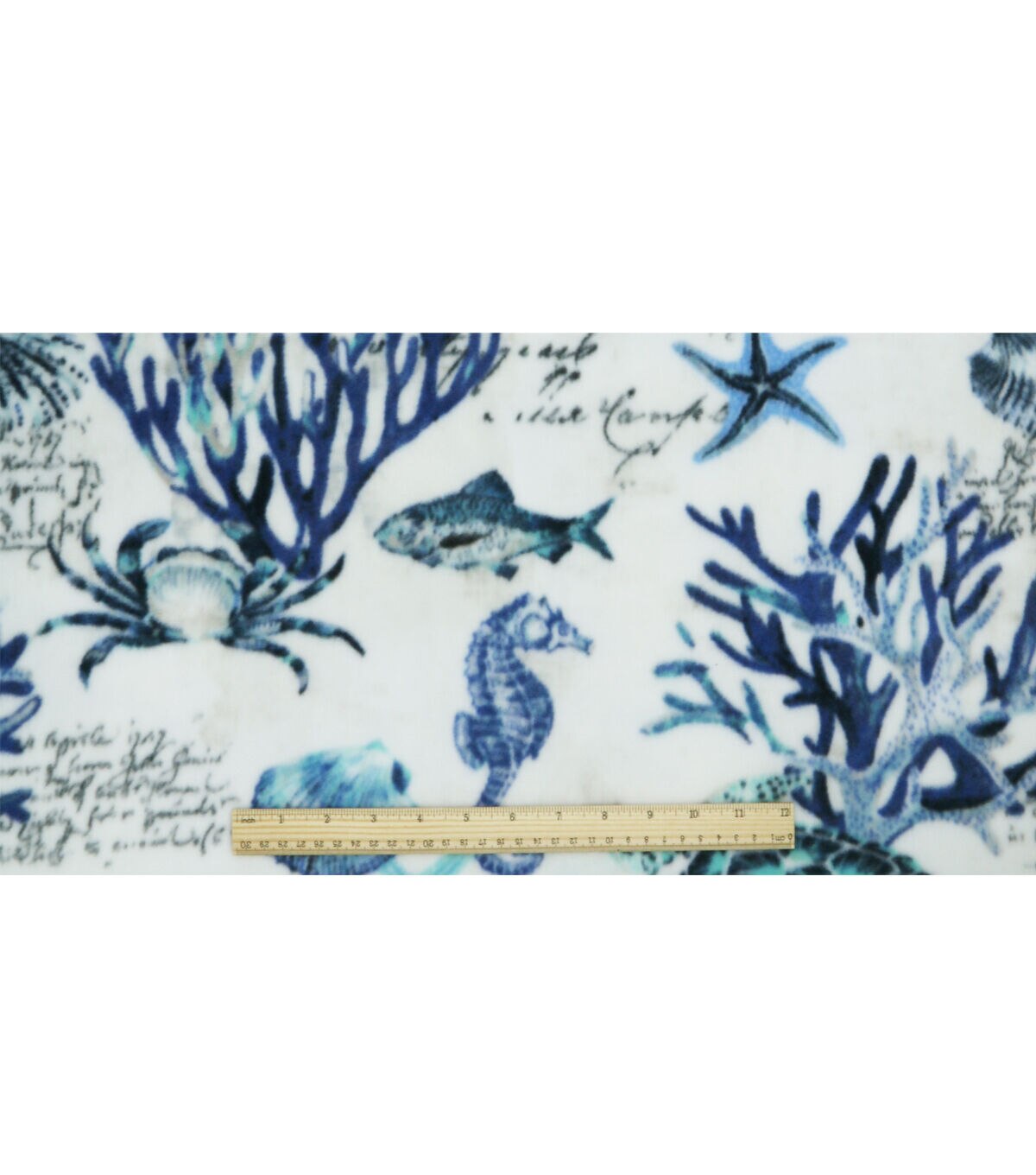 Blue Sea Animals on White Anti Pill Fleece Fabric