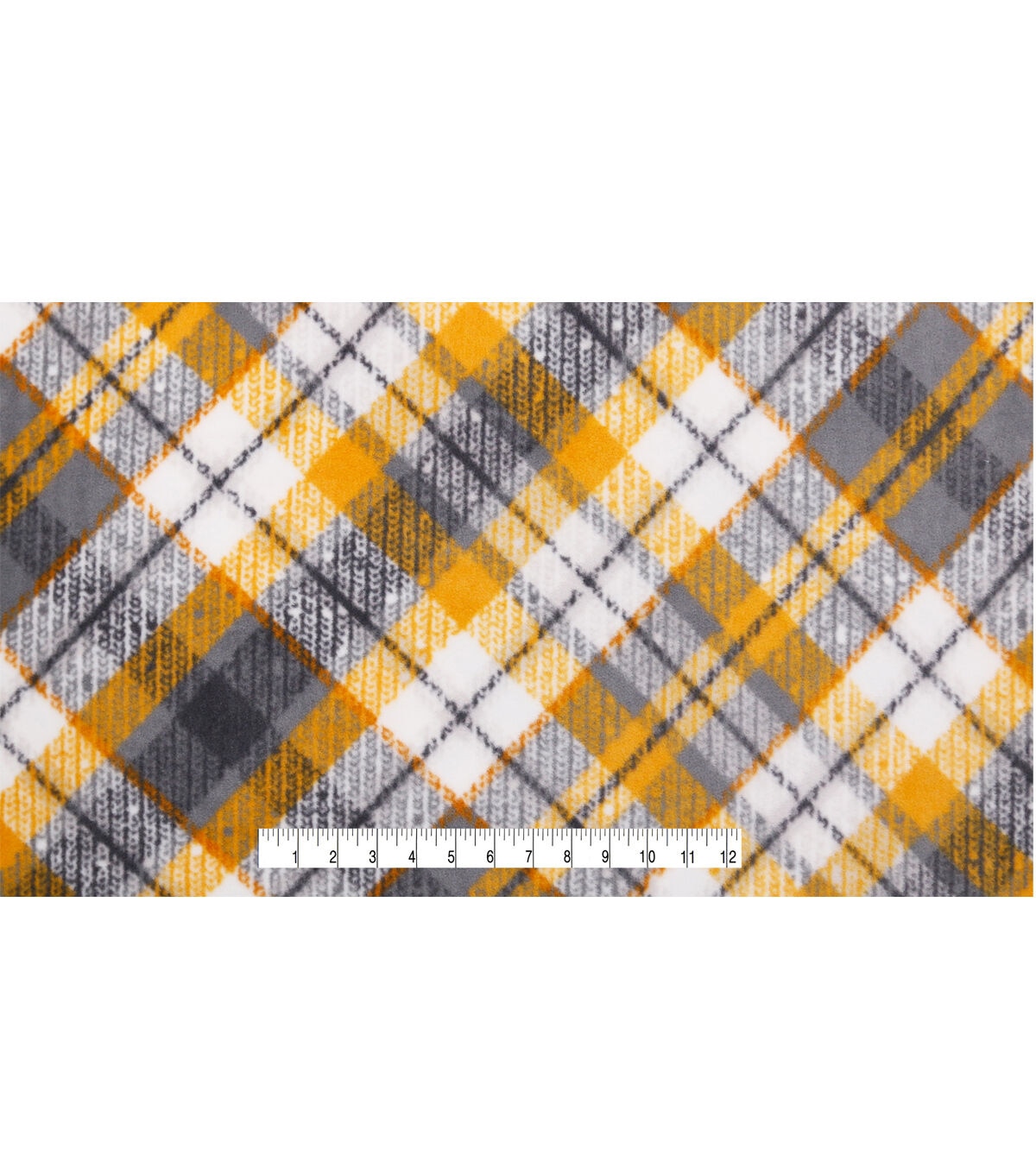 Gold & Gray Bias Plaid Anti Pill Fleece Fabric