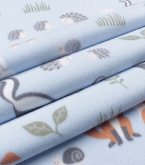 Woodland Animals On Blue Blizzard Fleece Fabric