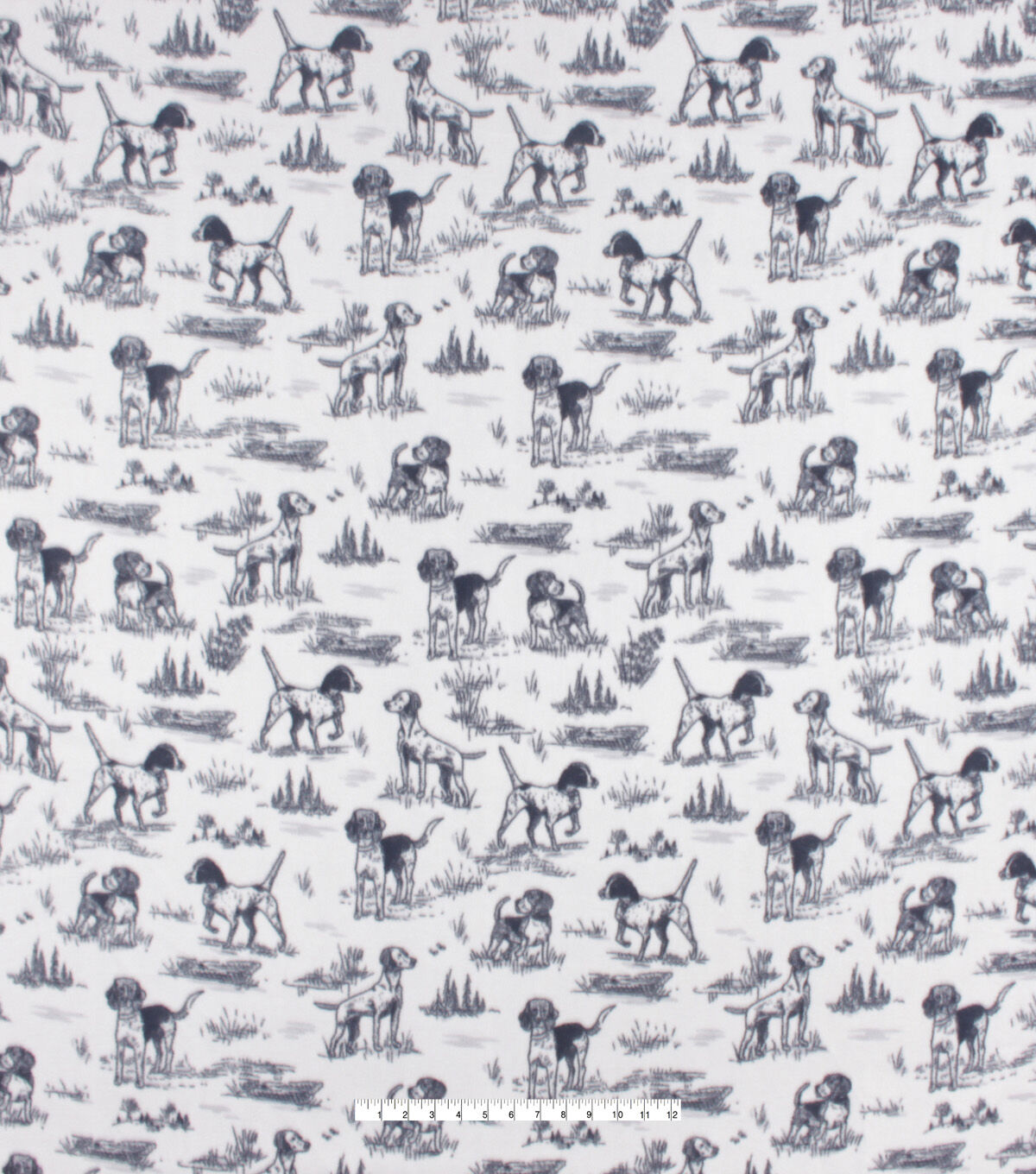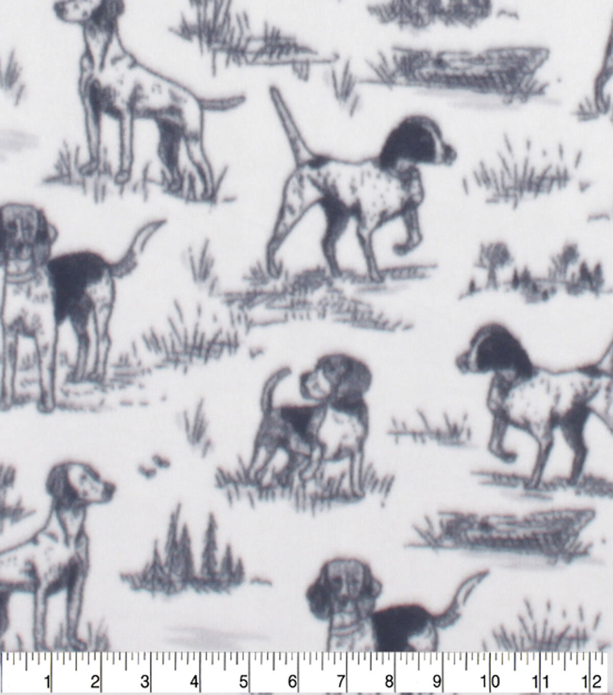 Hunting Dogs on White Anti Pill Fleece Fabric