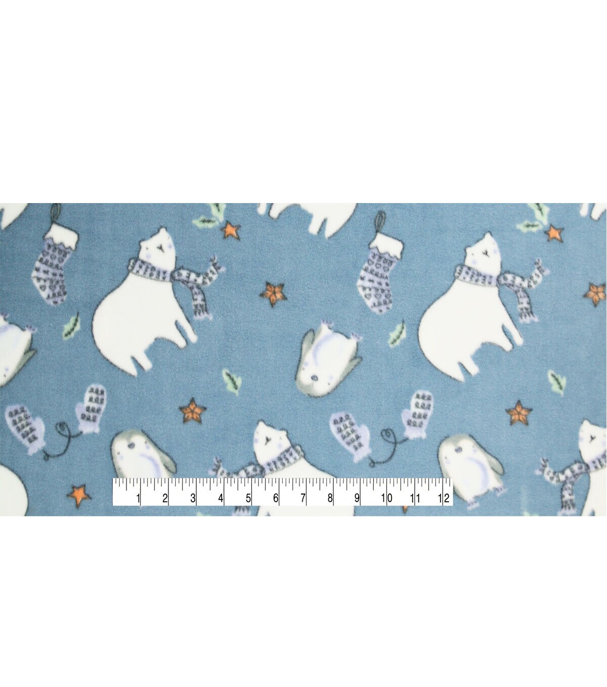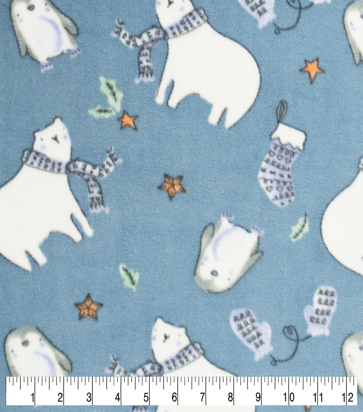 Winter Polar Bears on Blue Anti Pill Fleece Fabric