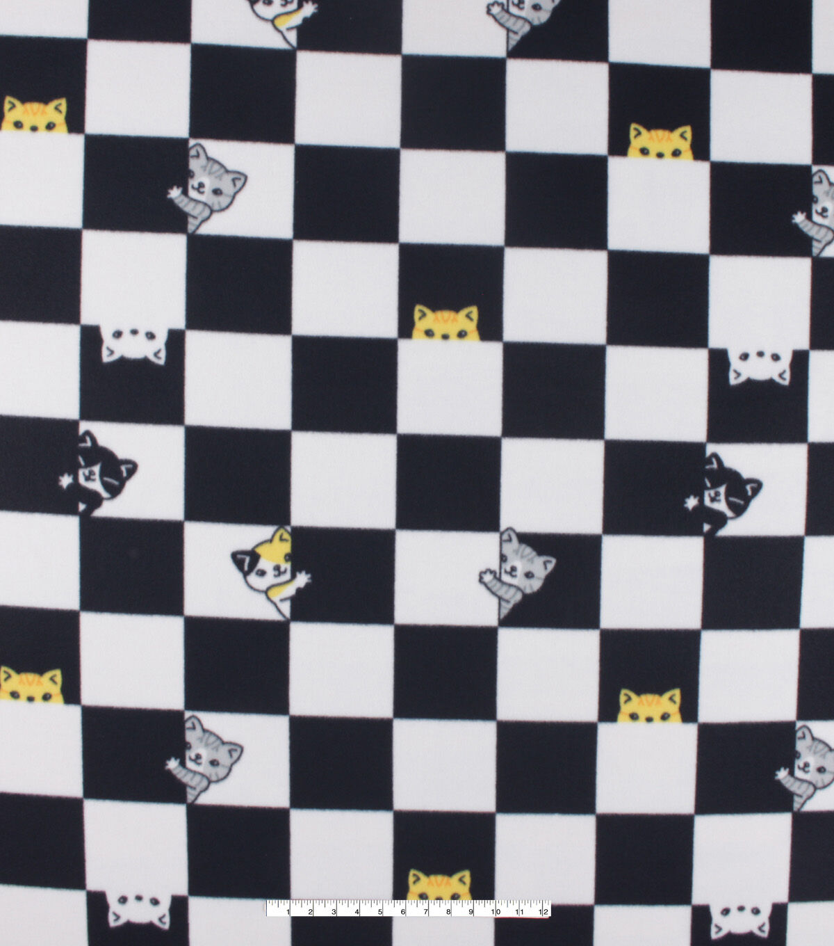 Cat Checkerboard Blizzard Prints Fleece Fabric