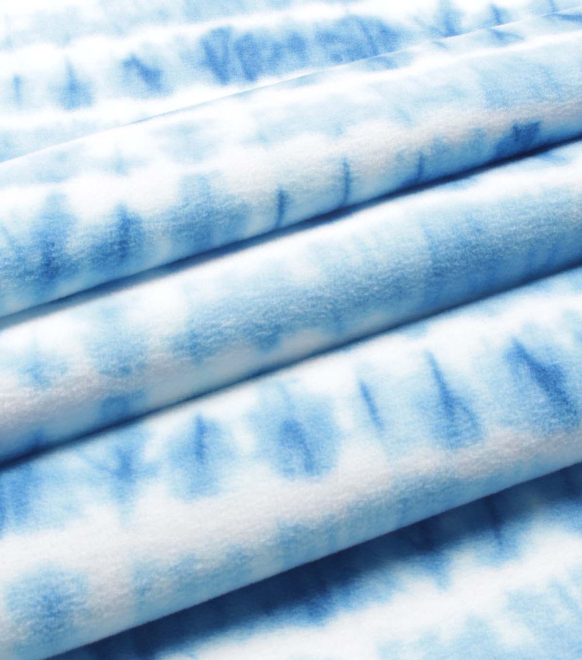 Blue & White Watercolor Tie Dye Anti Pill Plush Fleece Fabric