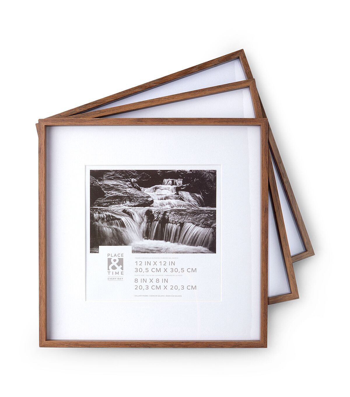 12 x 12 Matted to 8 x 8 Walnut Wall Frame Set 3pk by Place & Time