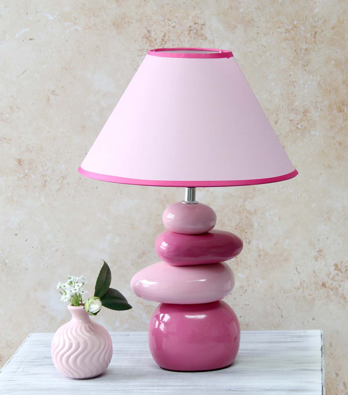 All The Rages 17 Ceramic Stacking Stones Lamp With Pink Fabric Shade