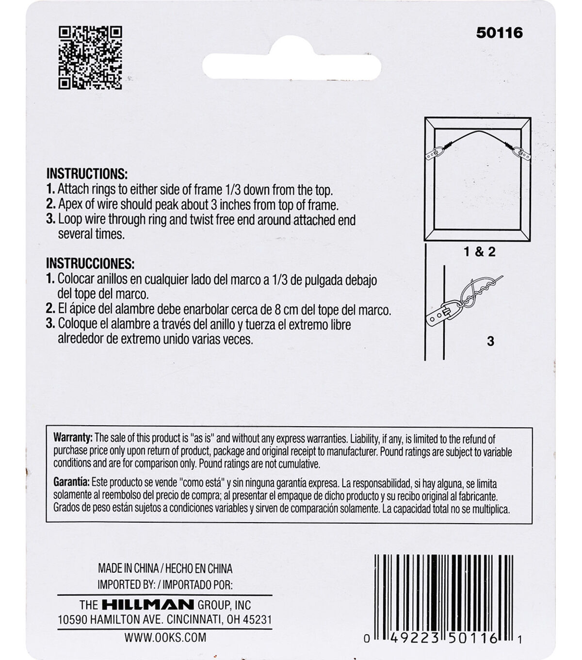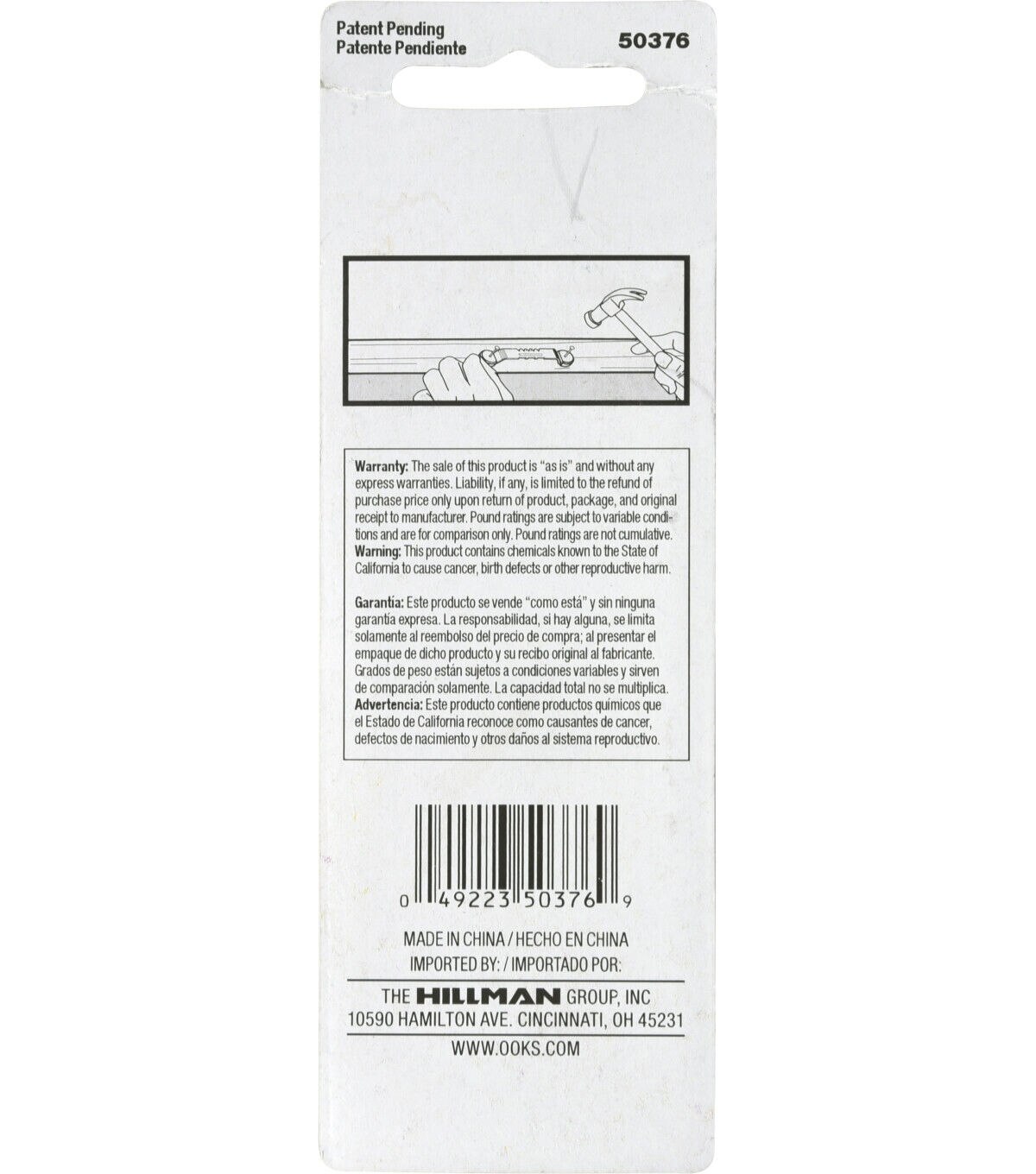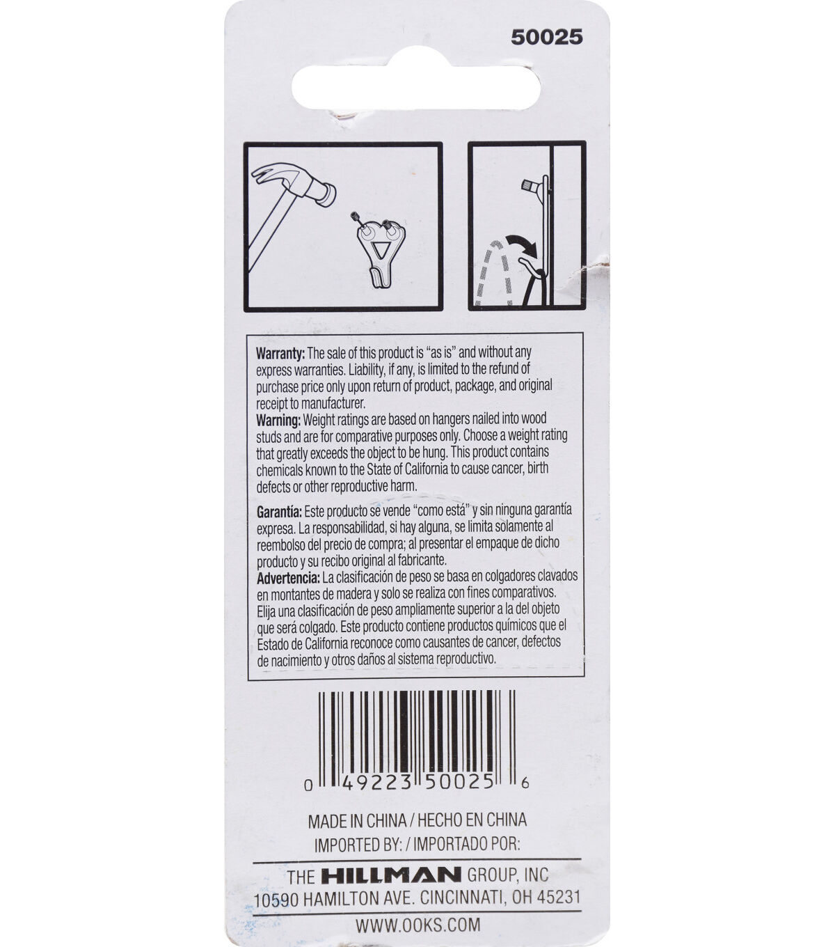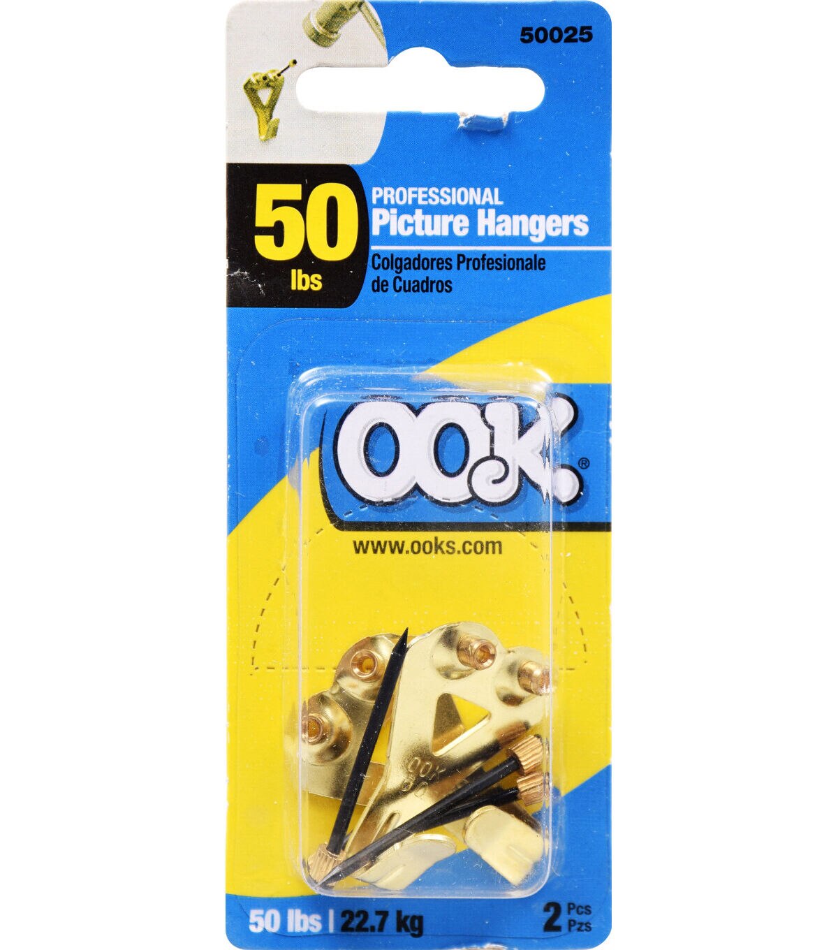 Ook 50lbs Brass Finished Professional Single Picture Hangers 2ct