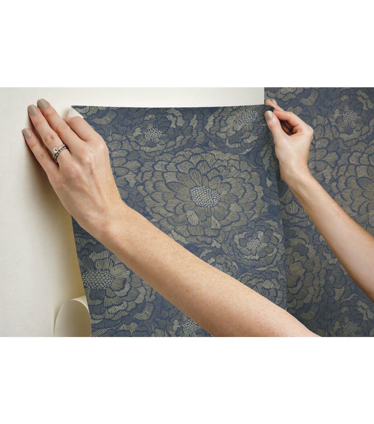 RoomMates 20.5 x 16.5' Blue Zen Dahlia Peel & Stick Wallpaper