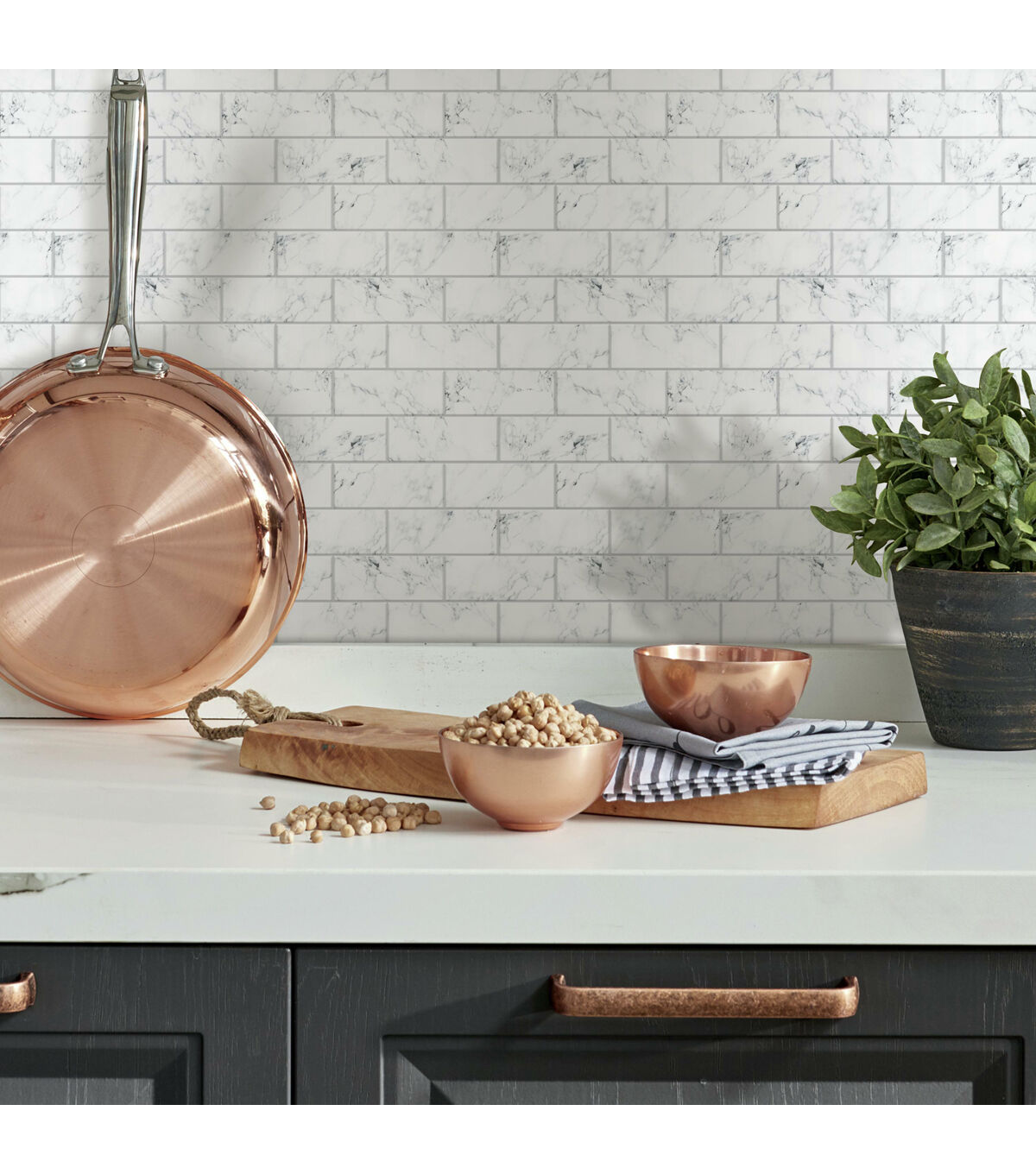 Carrara Marble Subway Peel & Stick Tile Backsplash
