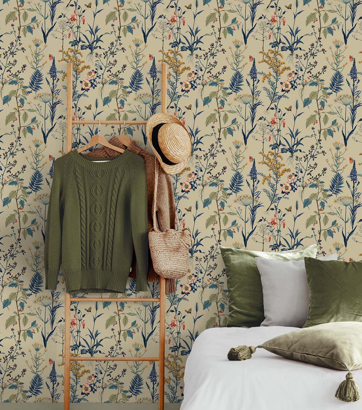 Surface Style 20.5' x 18' Parchment Meadow Peel & Stick Wallpaper