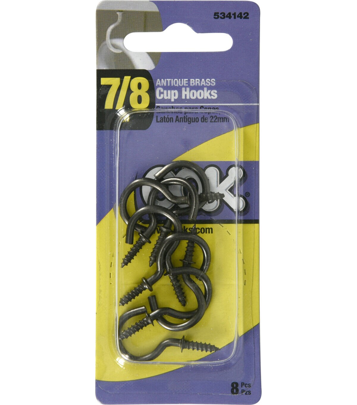 Ook 7/8 Antique Brass Cup Hooks 8pk