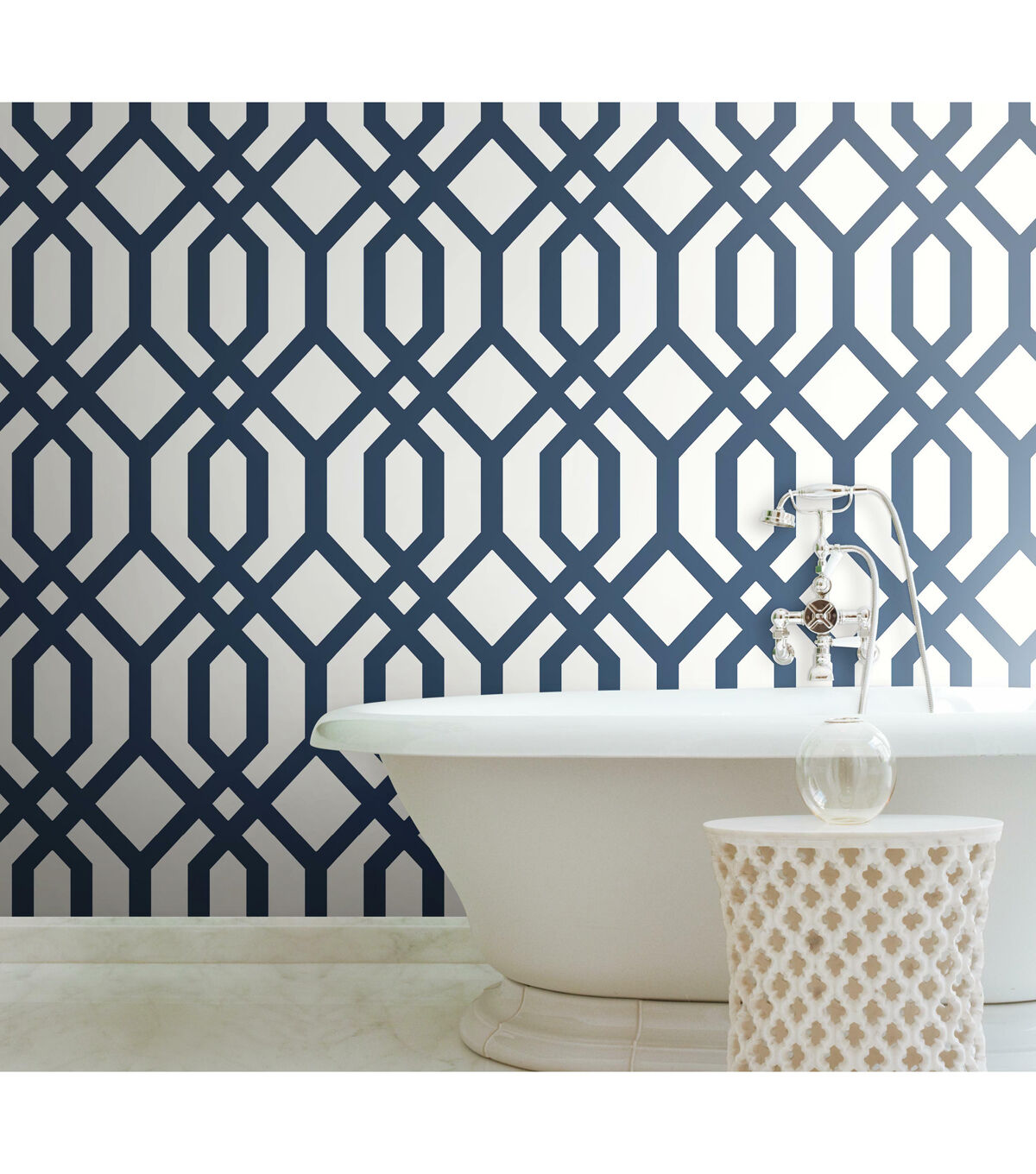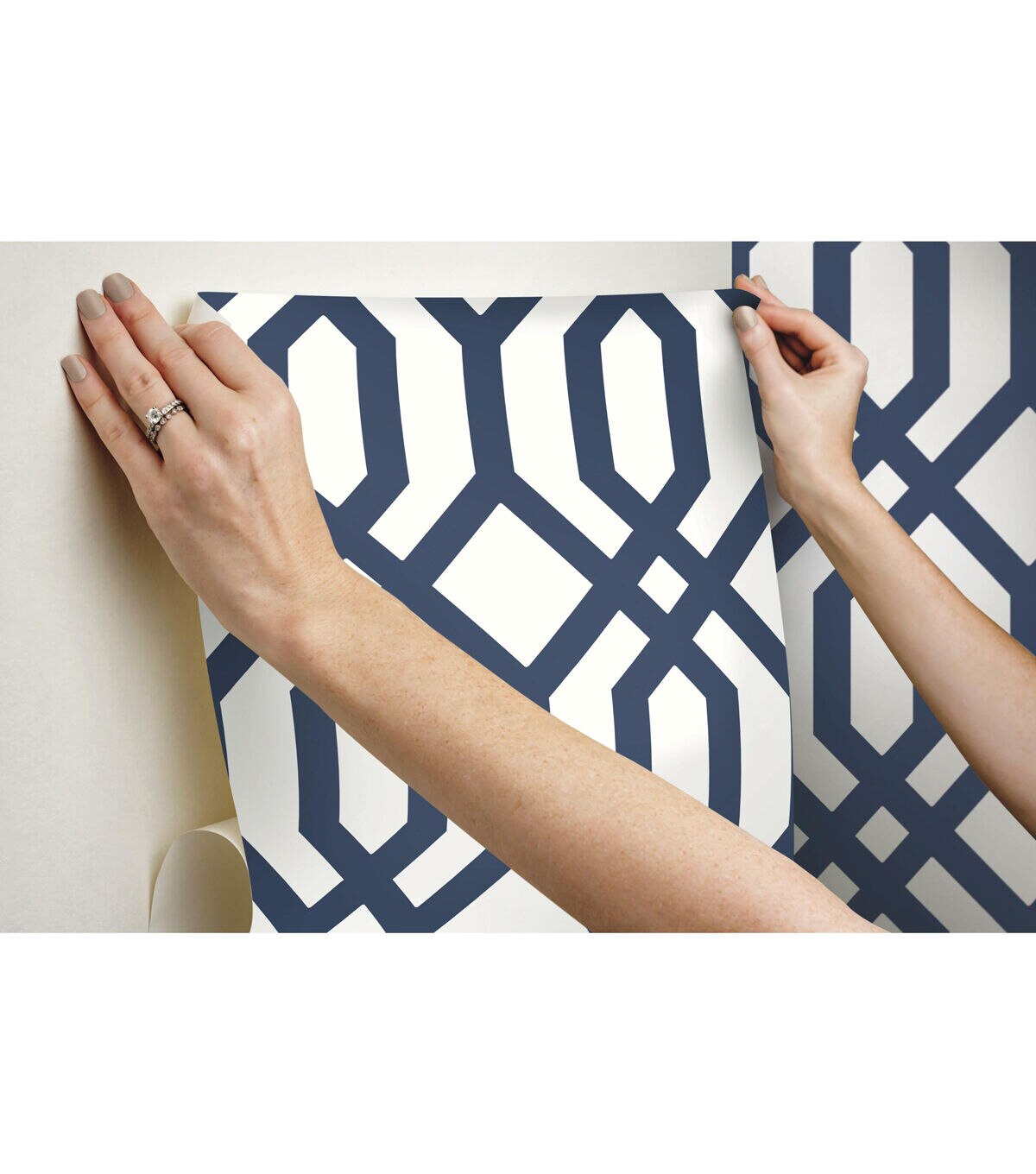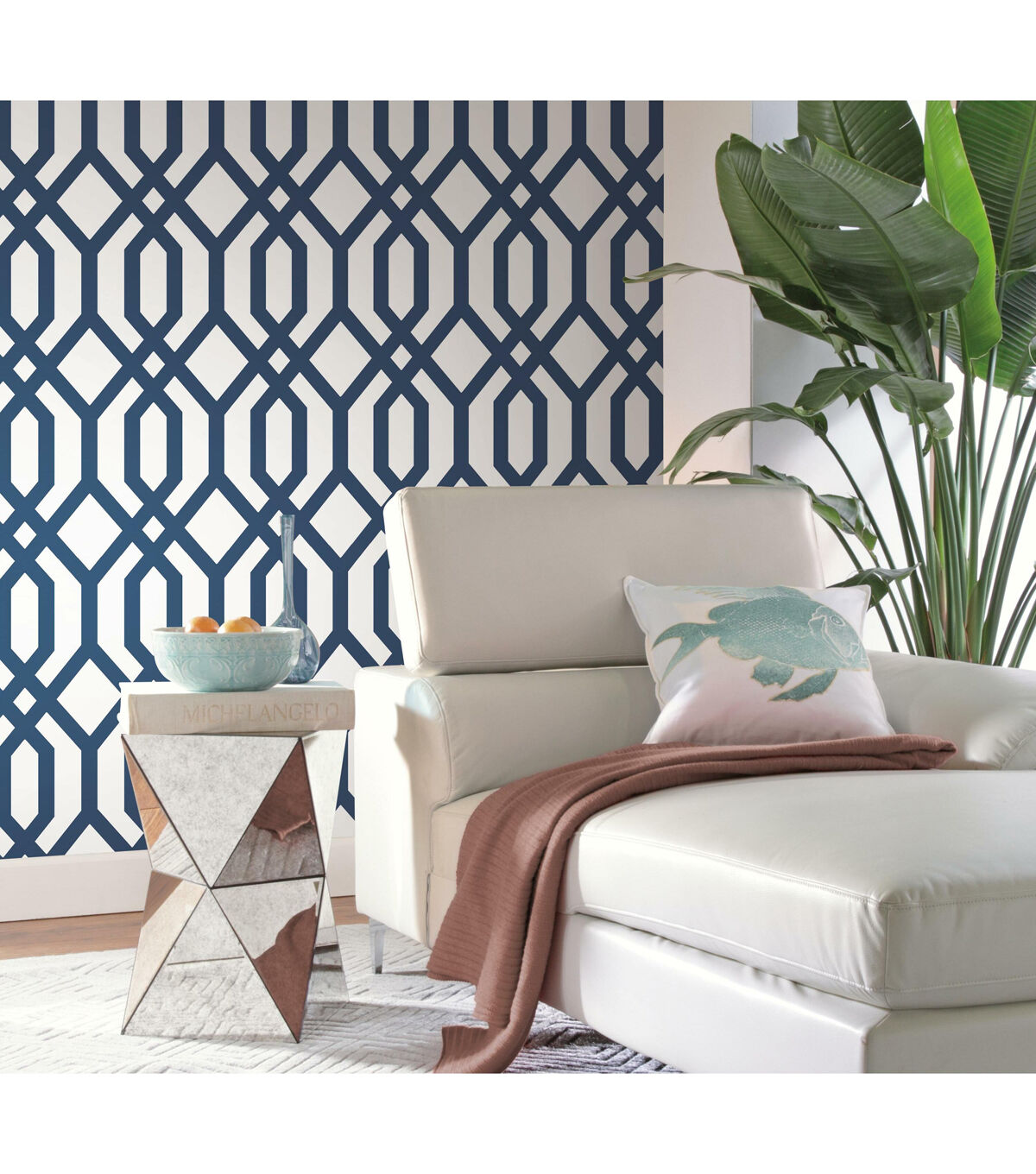 RoomMates 20.5 x 16.5' Navy Gazebo Lattice Peel & Stick Wallpaper