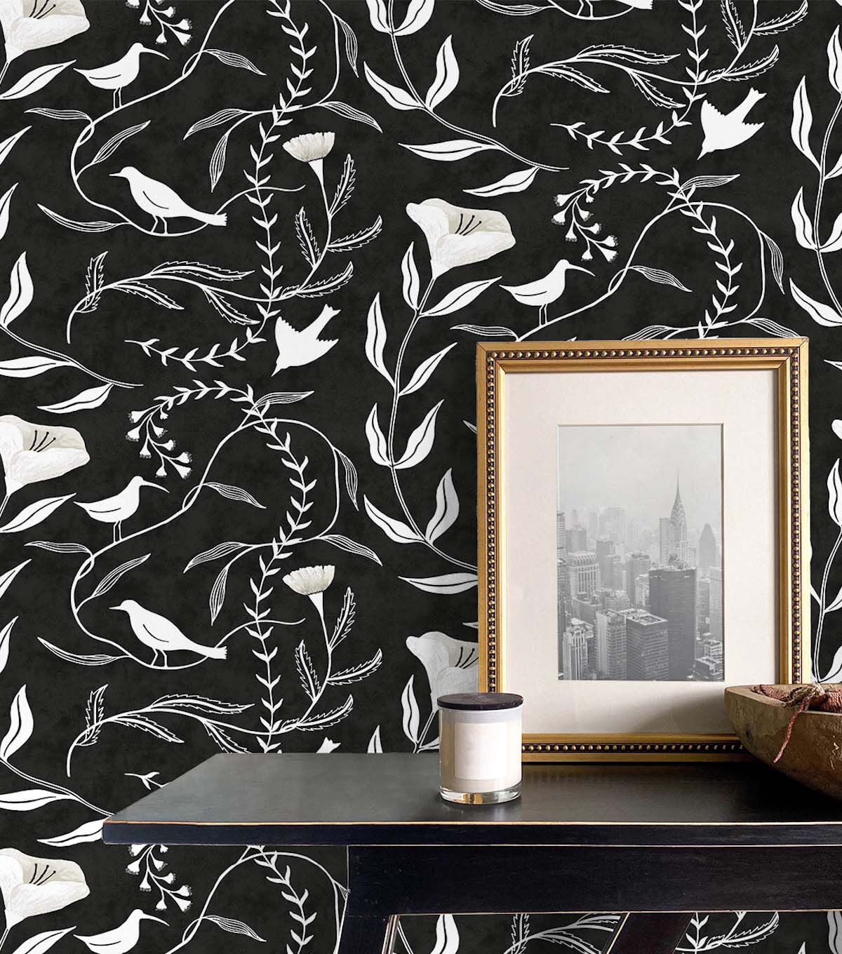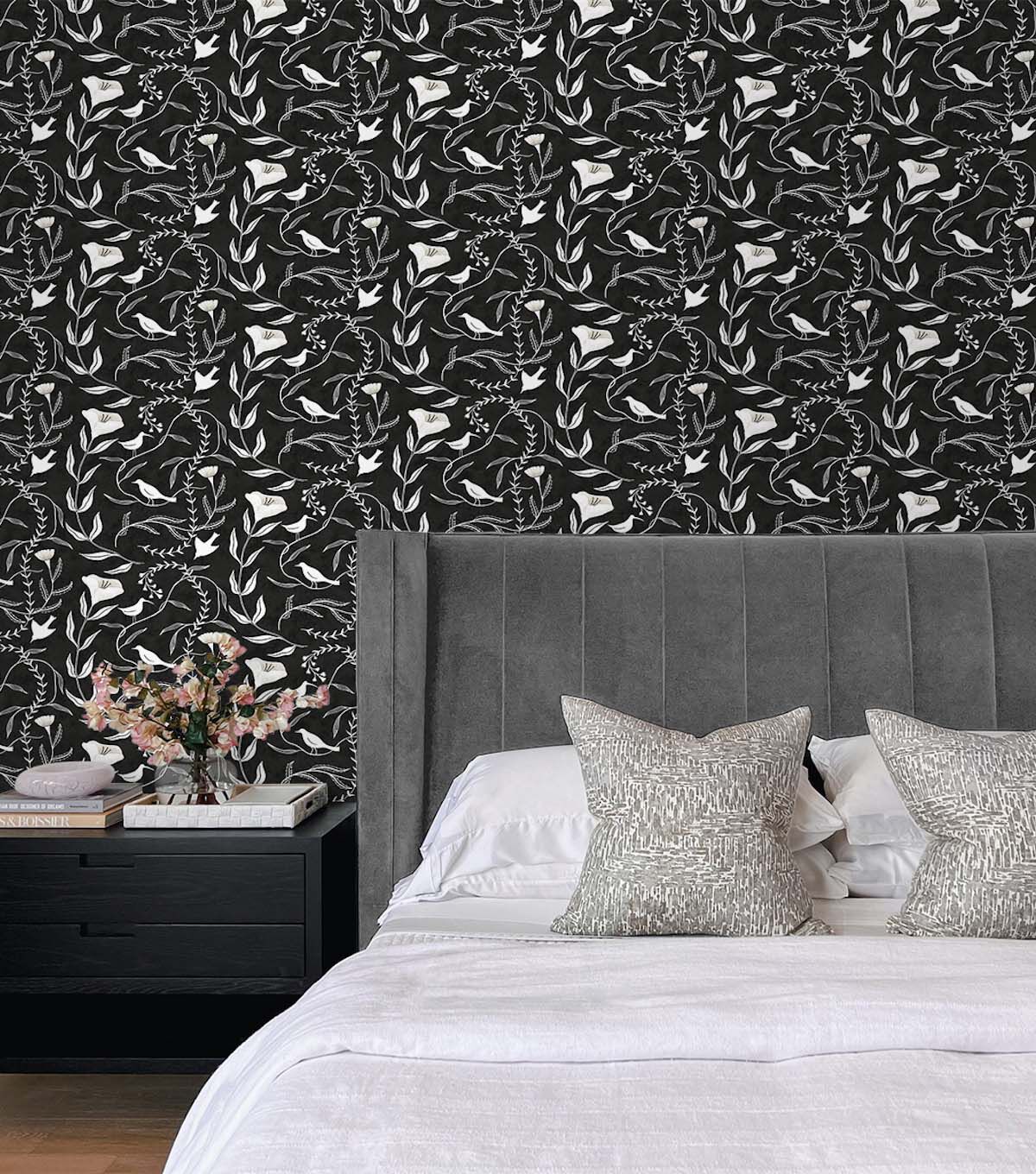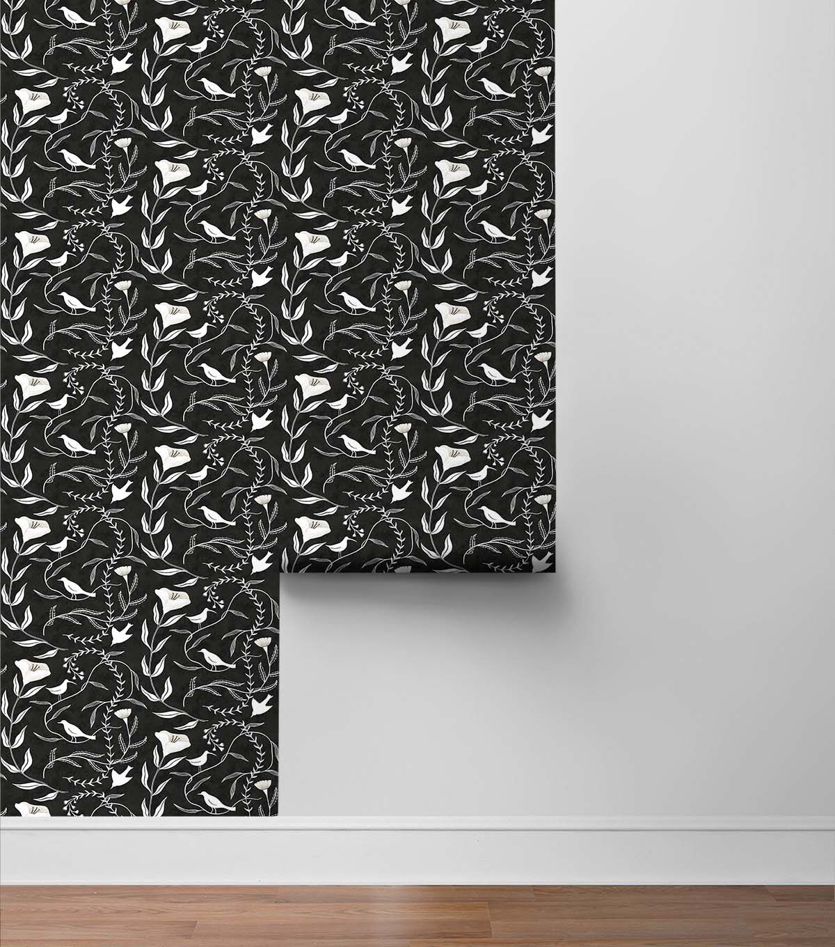 Elana Gabrielle 20.5' x 18' Coal Birdsong Peel & Stick Wallpaper