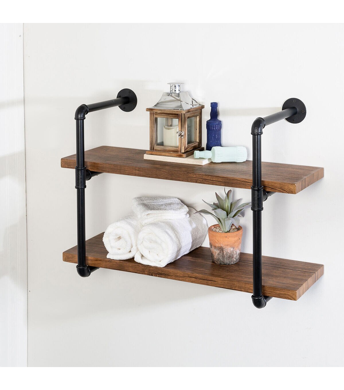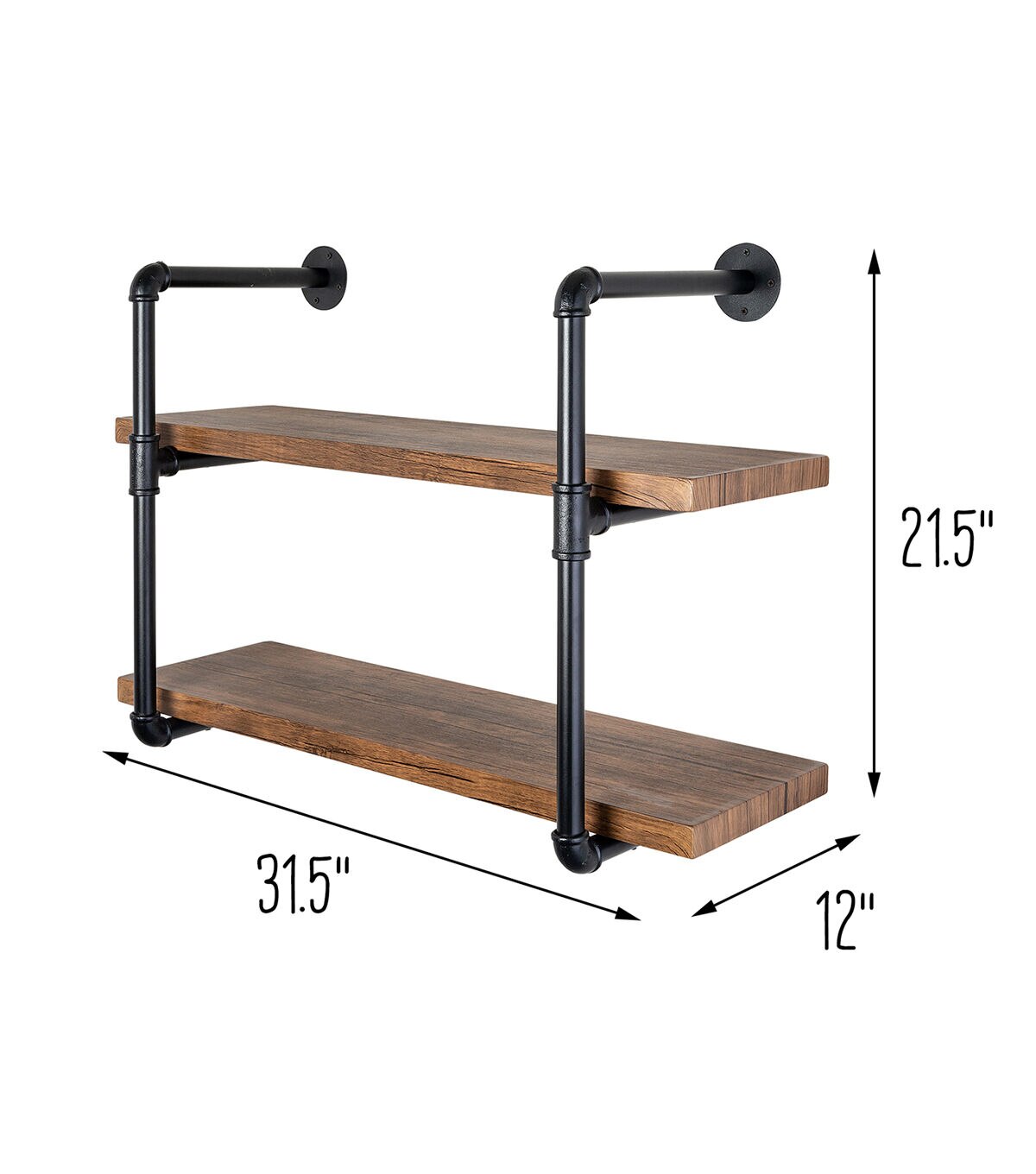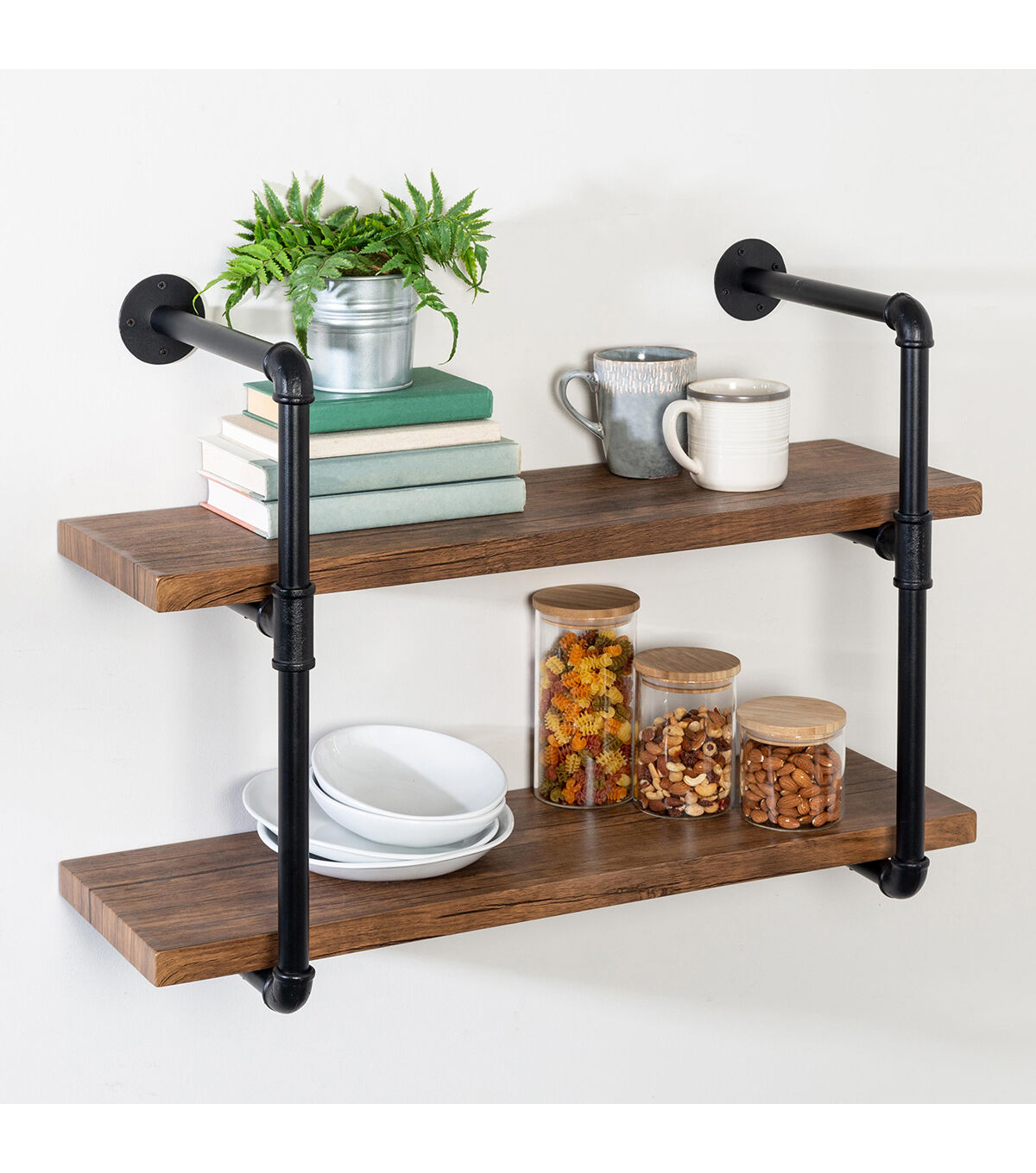 Honey Can Do 2 Tier Black Industrial Wall Shelf