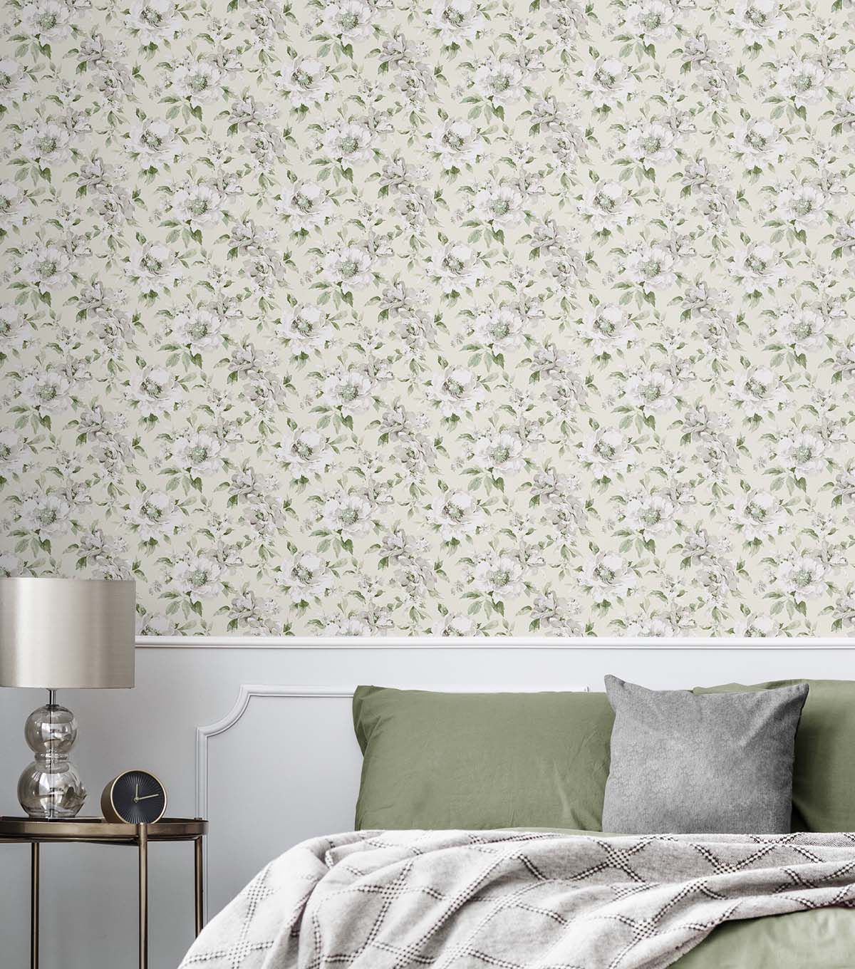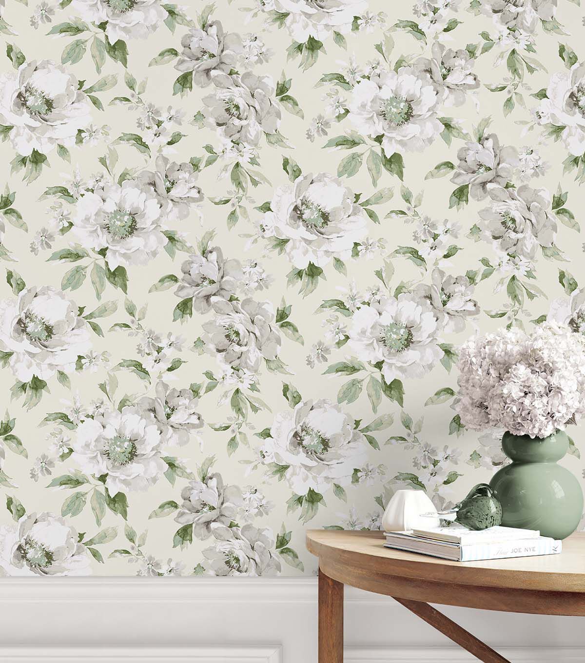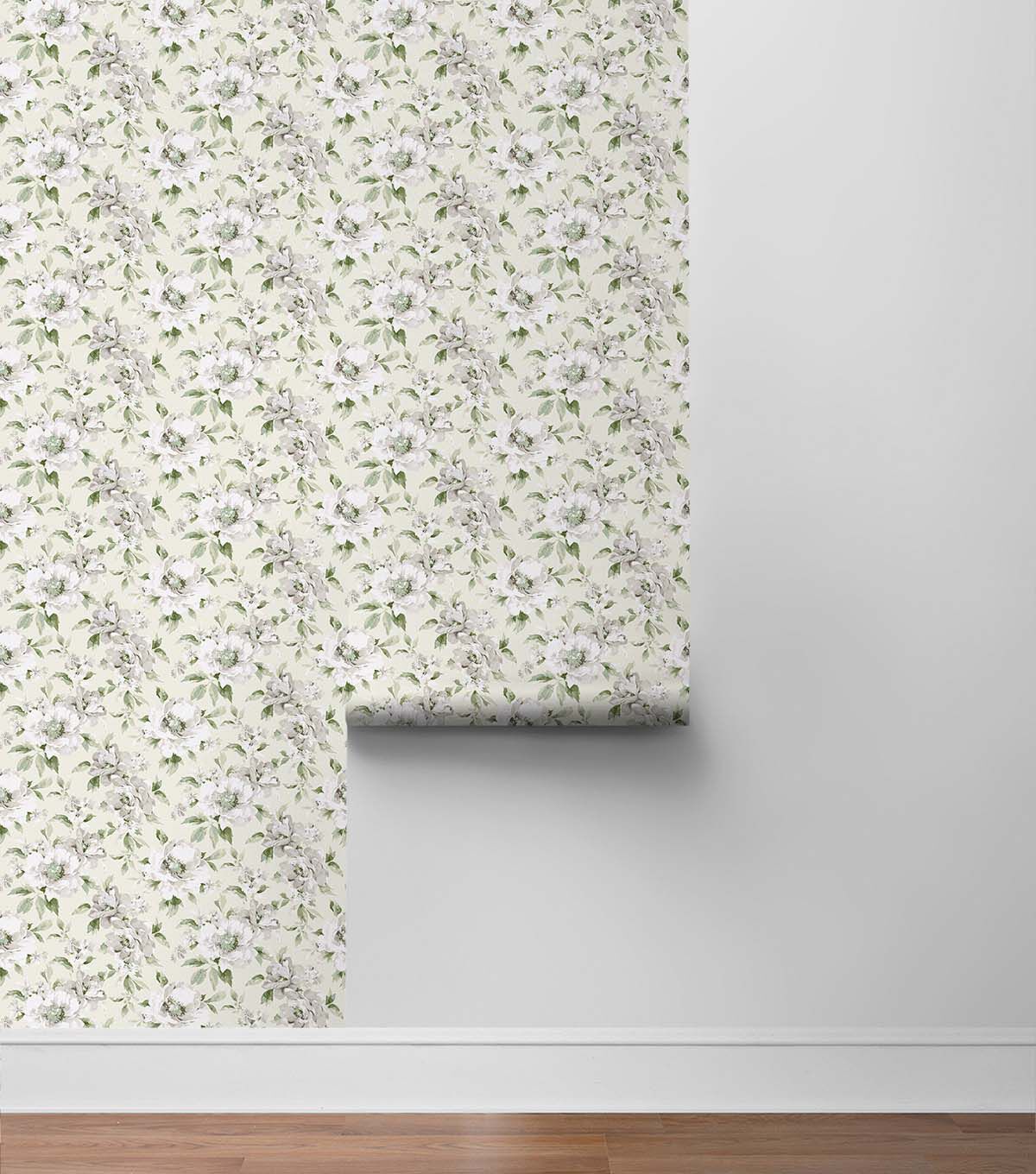 Surface Style 20.5' x 18' Celadon Whispery Floral Peel & Stick Wallpaper