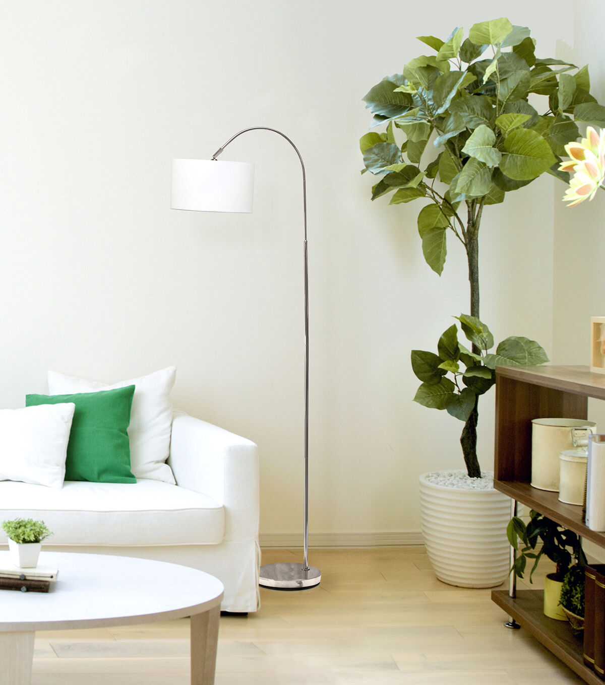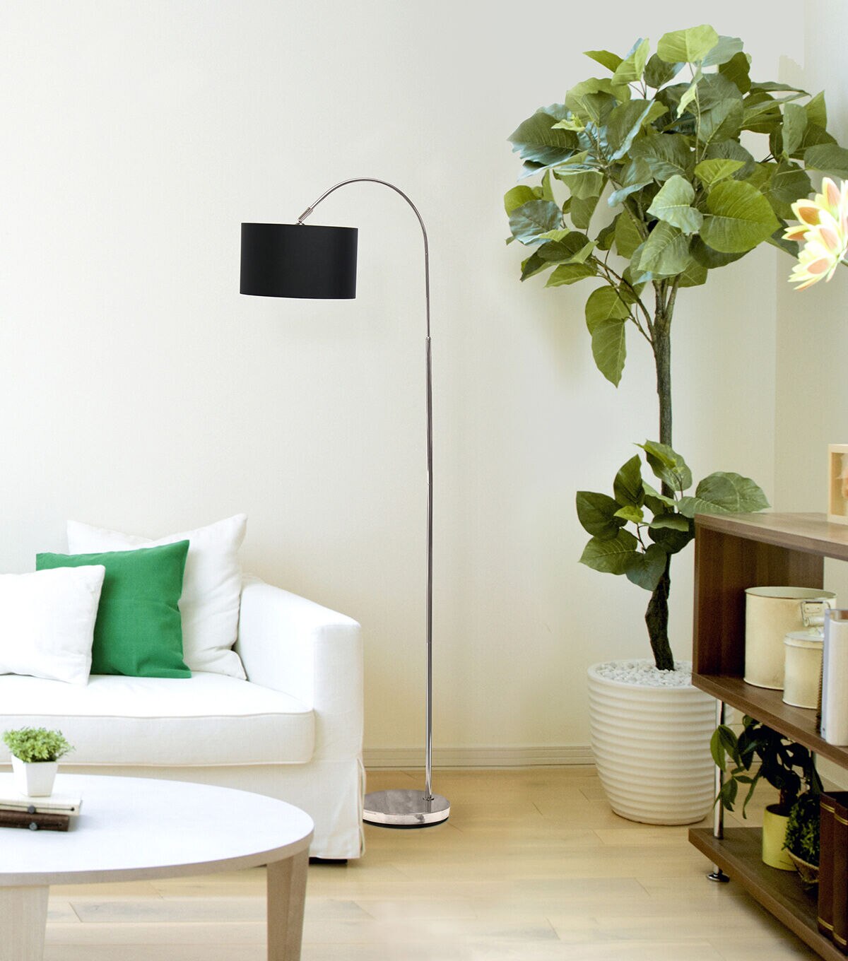 All The Rages Arched Brushed Nickel Floor Lamp, Black Shade
