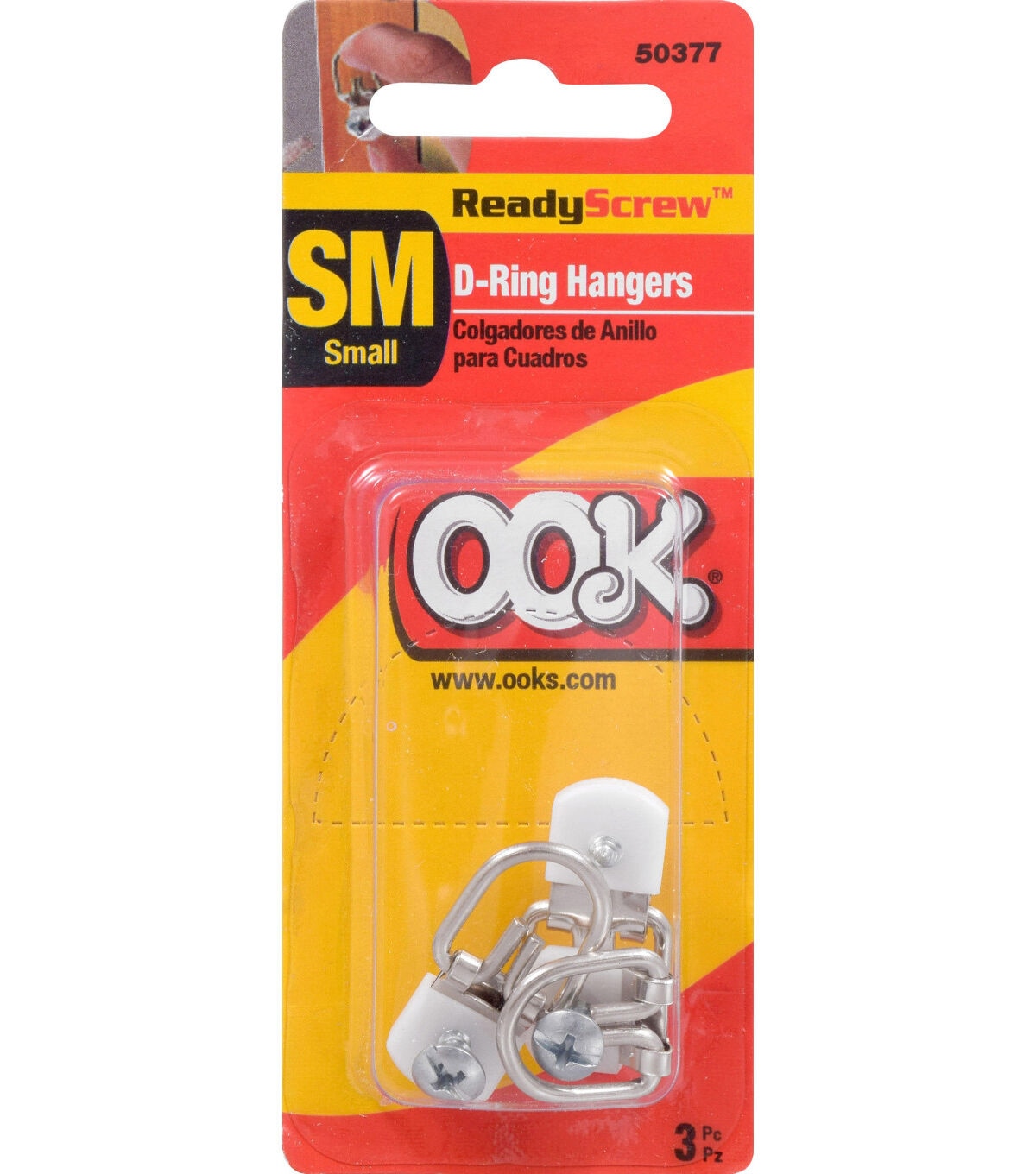Ook 3pc ReadyScrew Small Brass D Ring Hangers