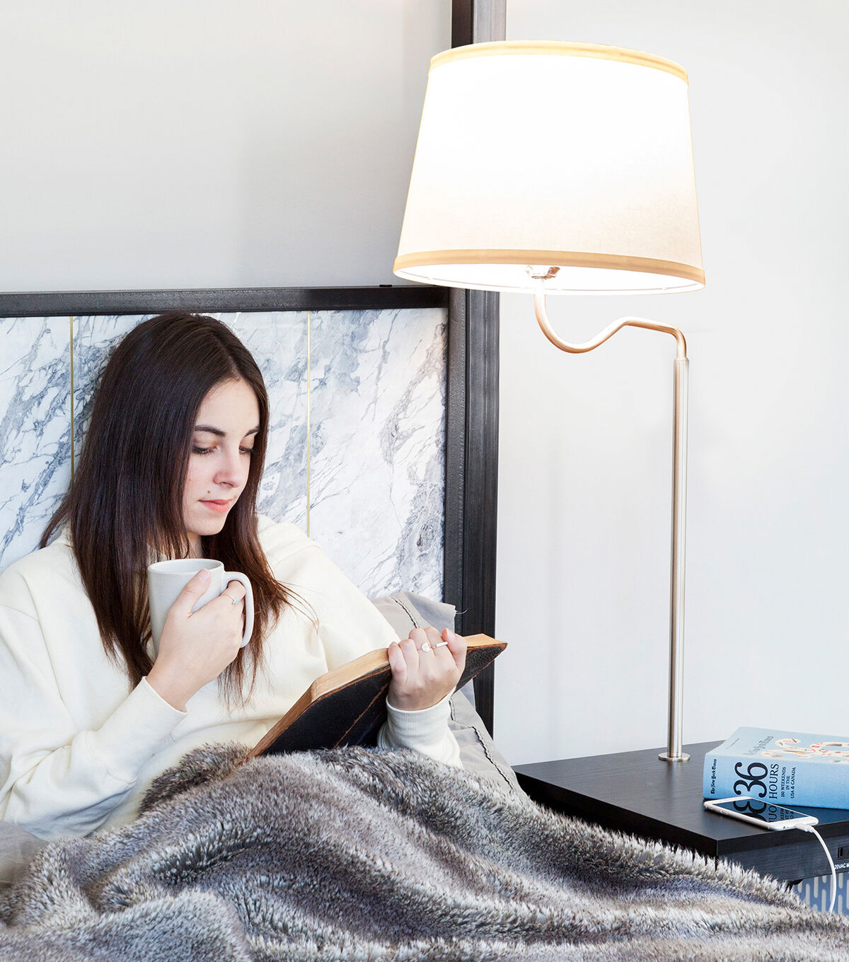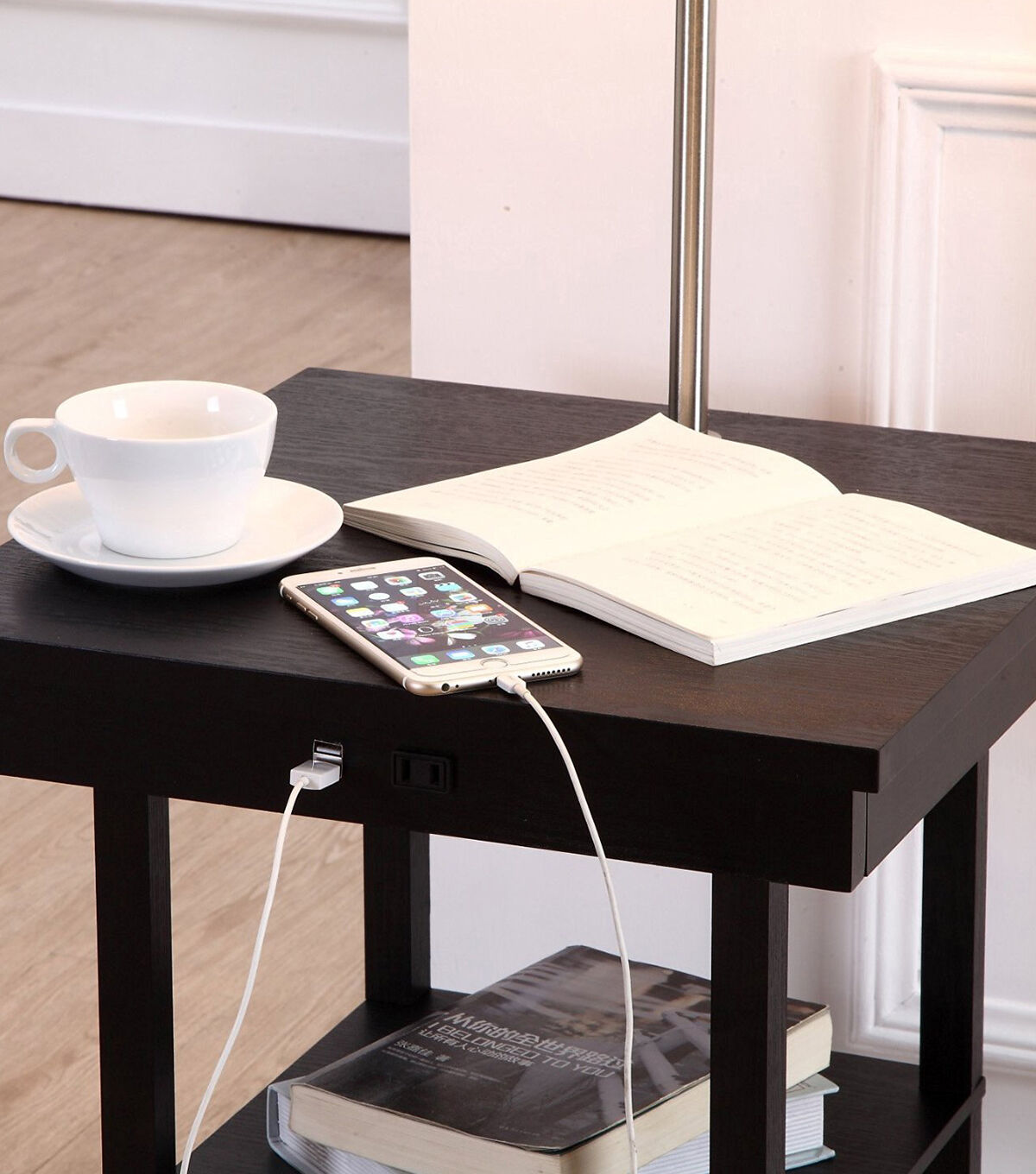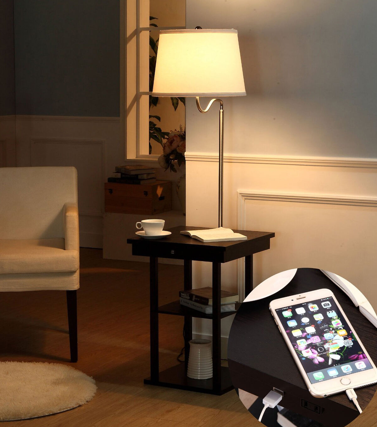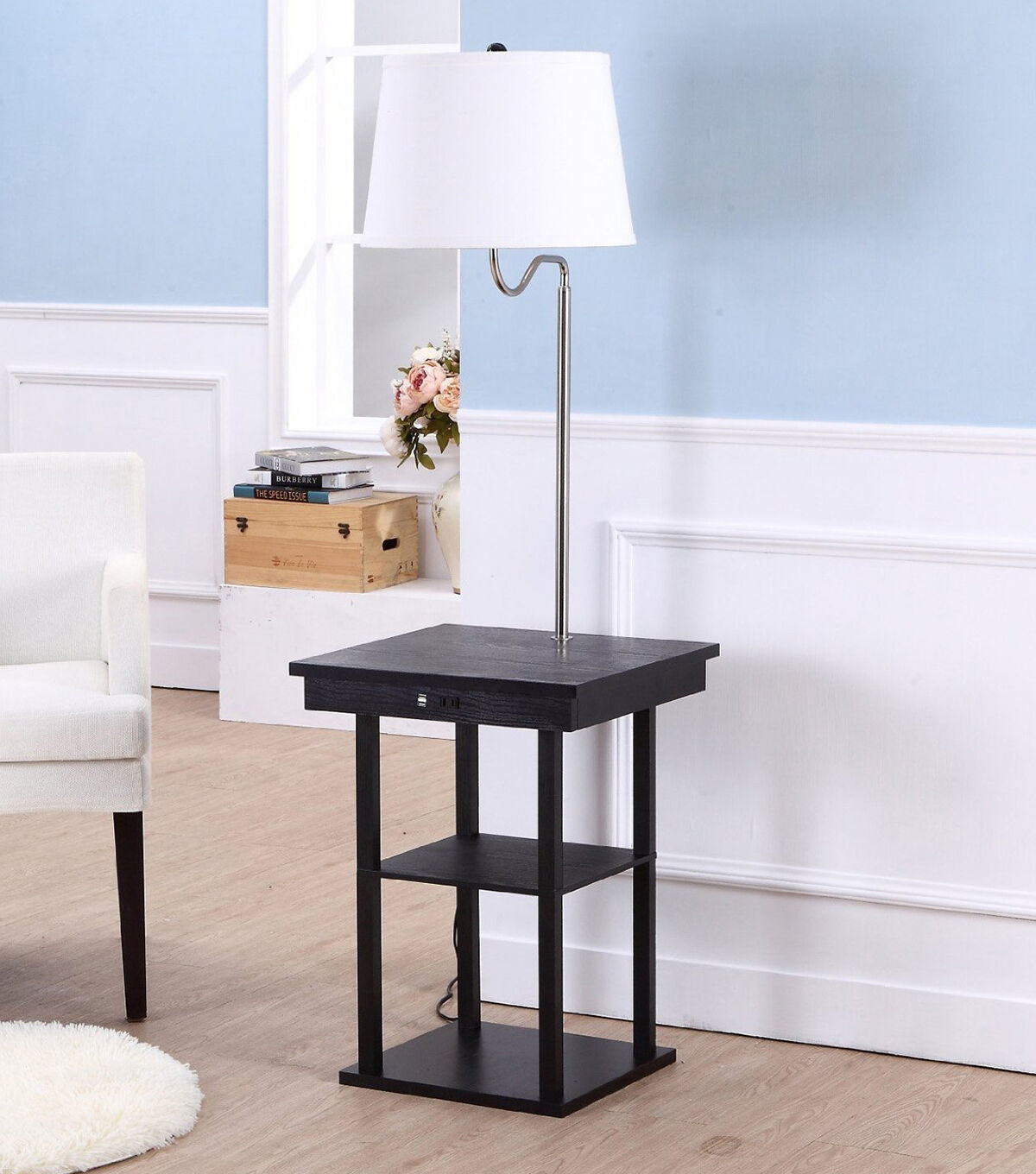 Brightech Madison with USB Port and Outlet - Black White Shade