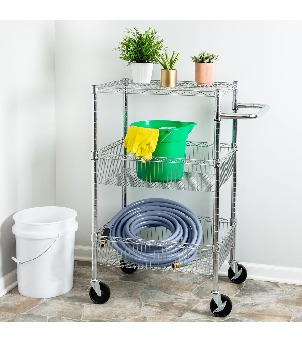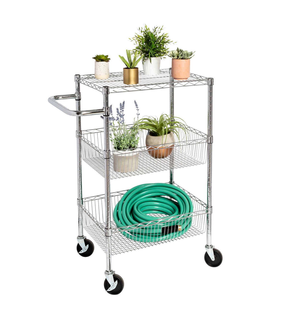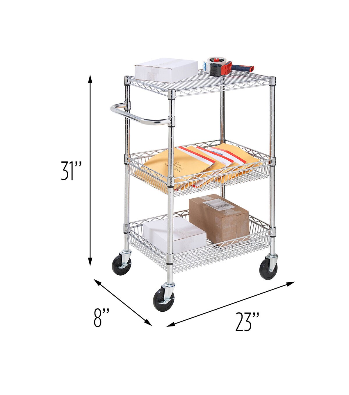 Honey Can Do 18 x 40 Steel Silver Chrome 3 Shelf Rolling Utility Cart