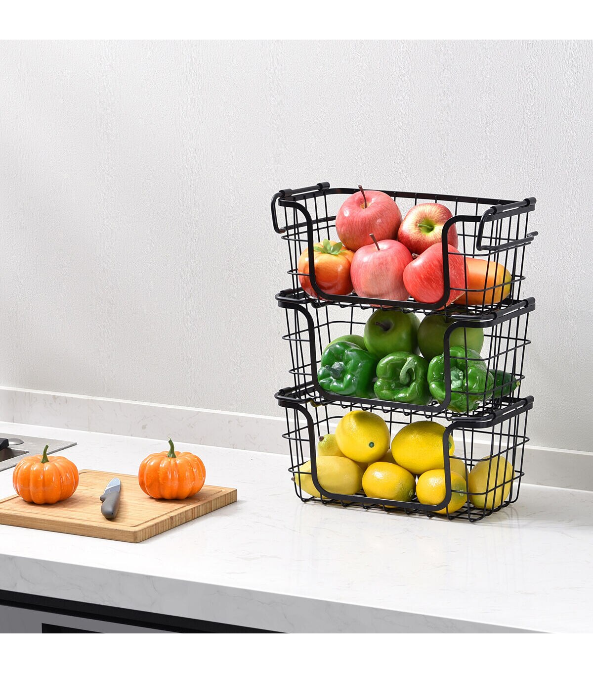 Oceanstar 12.5 x 6 Black Stackable Metal Wire Storage Baskets 3pk
