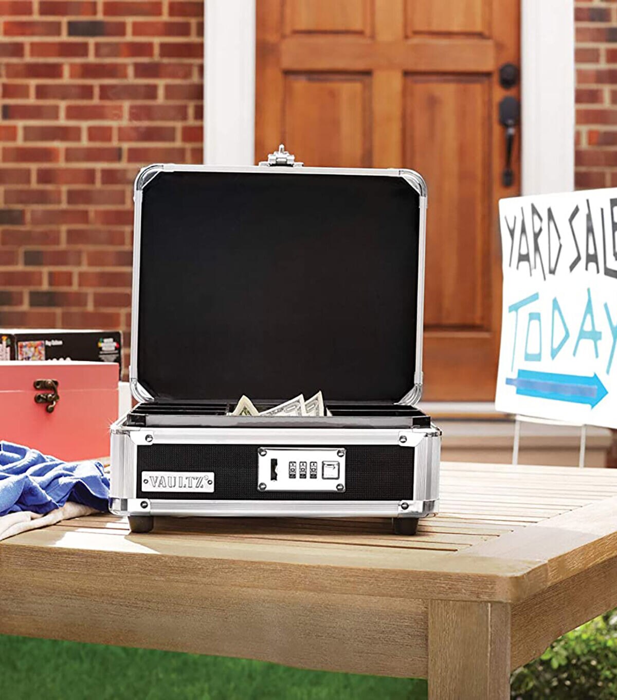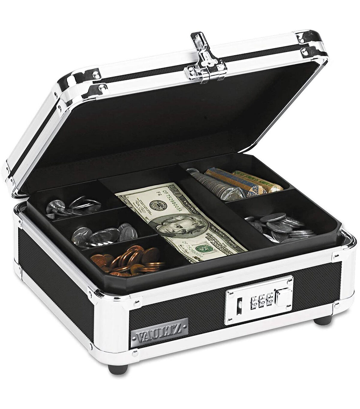 Vaultz Black & Chrome Plastic Locking Cash Box With Handle