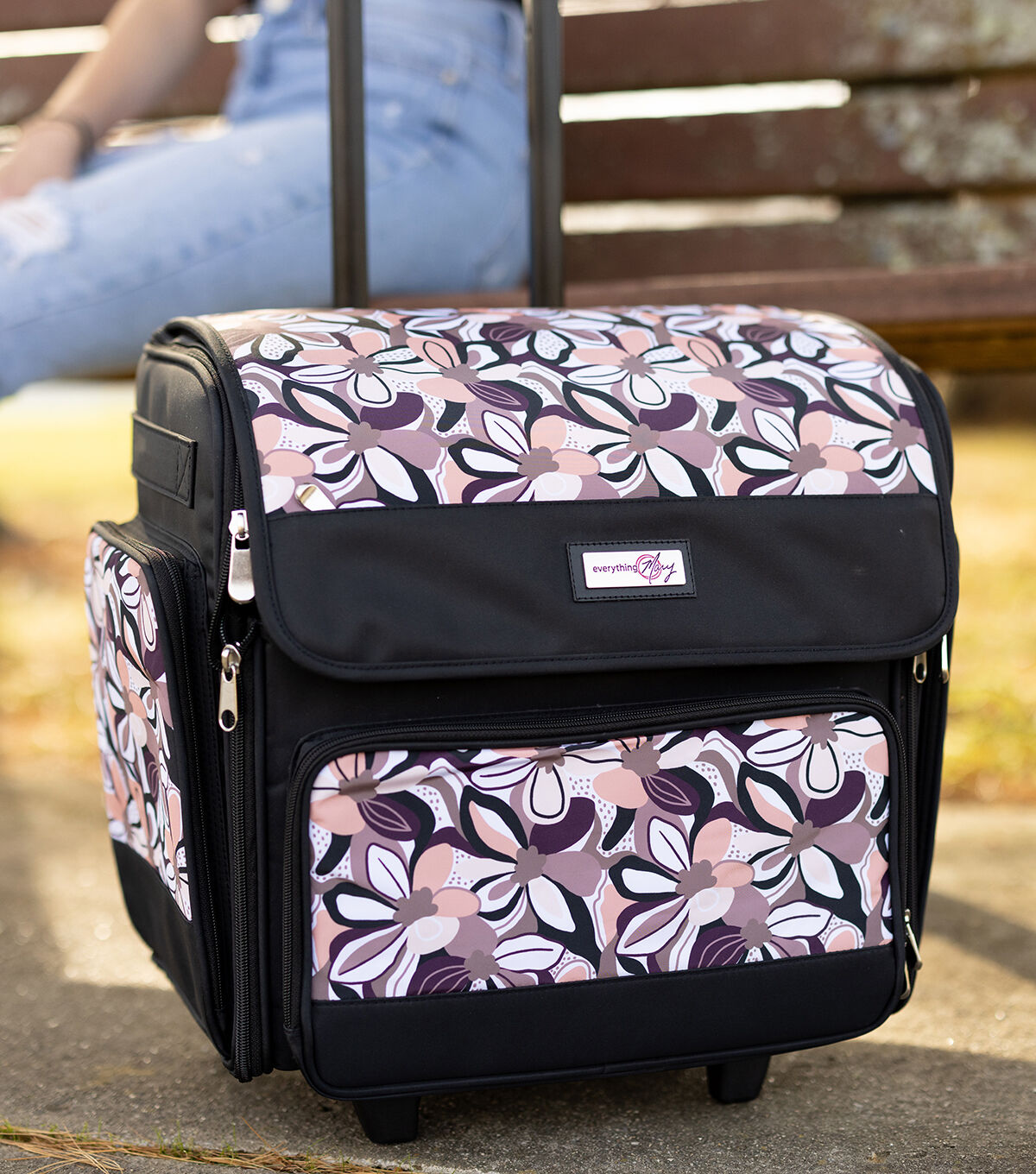 Everything Mary 18 Brown Floral Collapsible Rolling Craft Bag