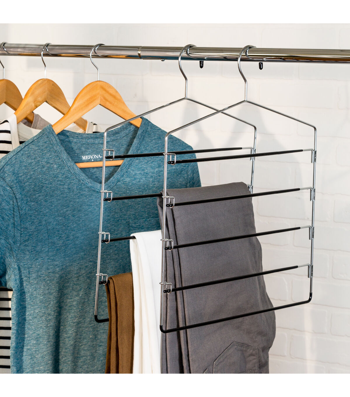 Honey Can Do 15 x 12 Chrome 5 Tier Swing Arm Pant Hangers 2pk