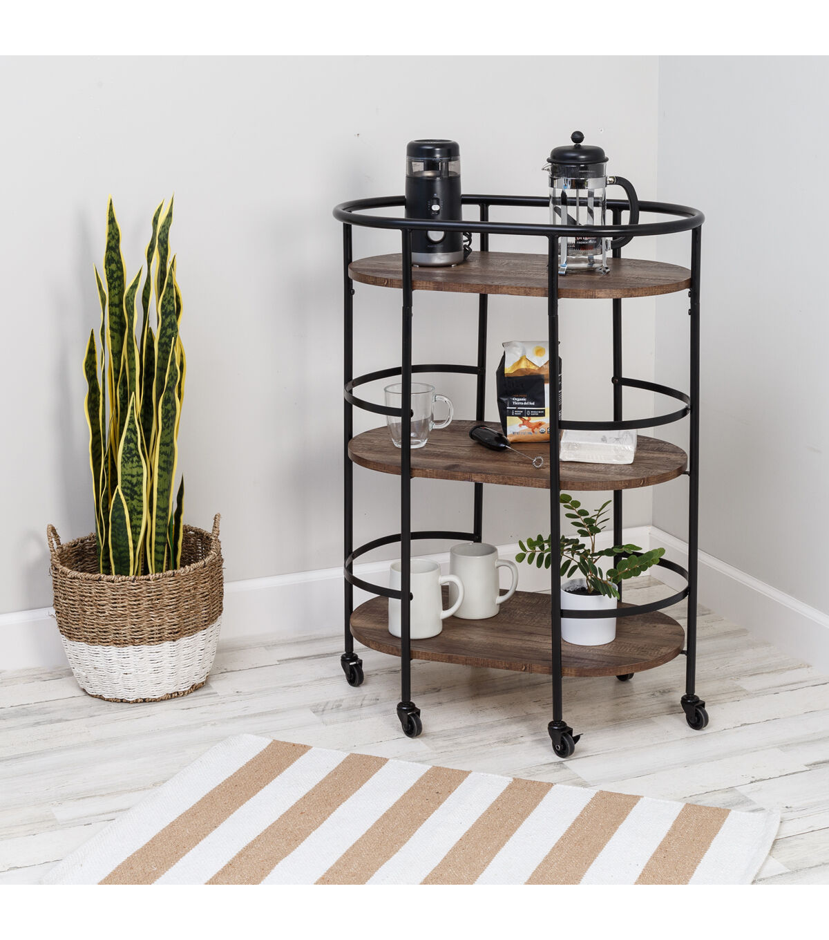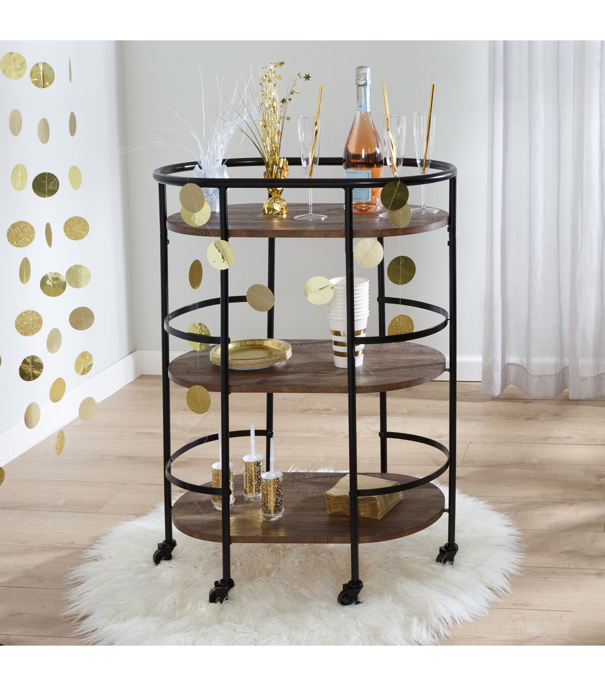 Honey Can Do 35 Black 3 Tier Rolling Bar & Serving Cart