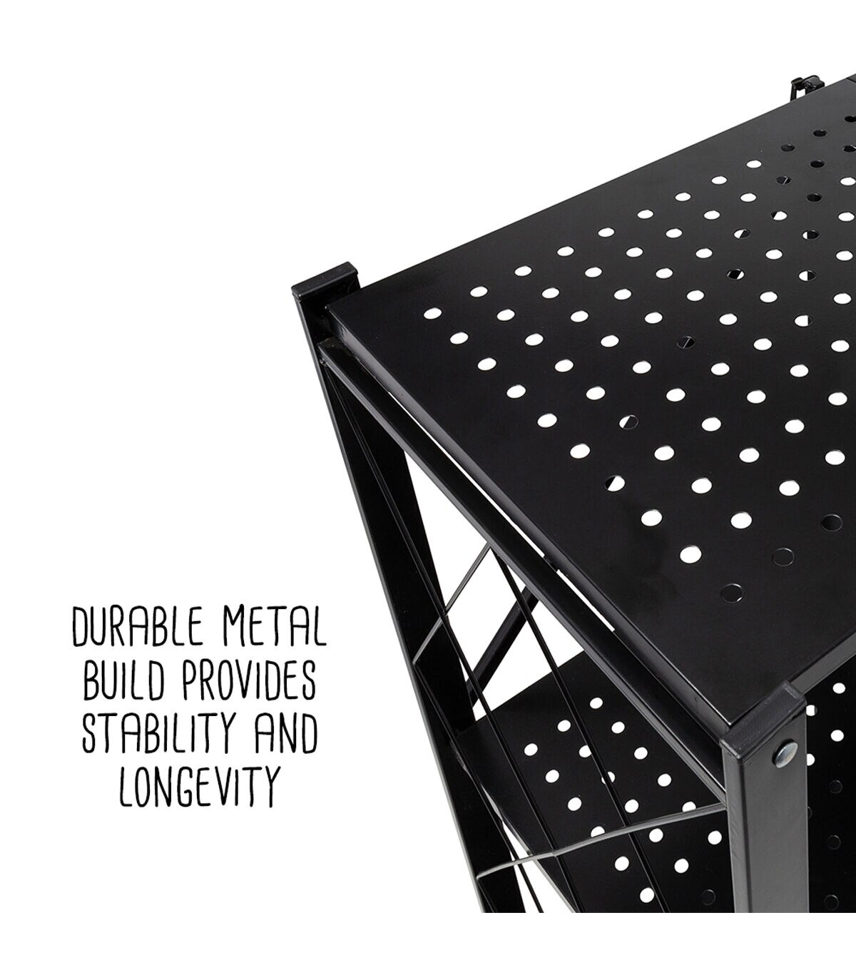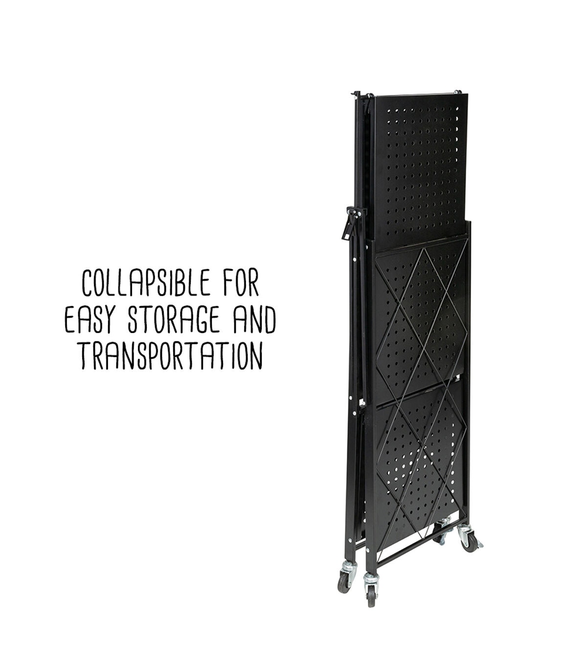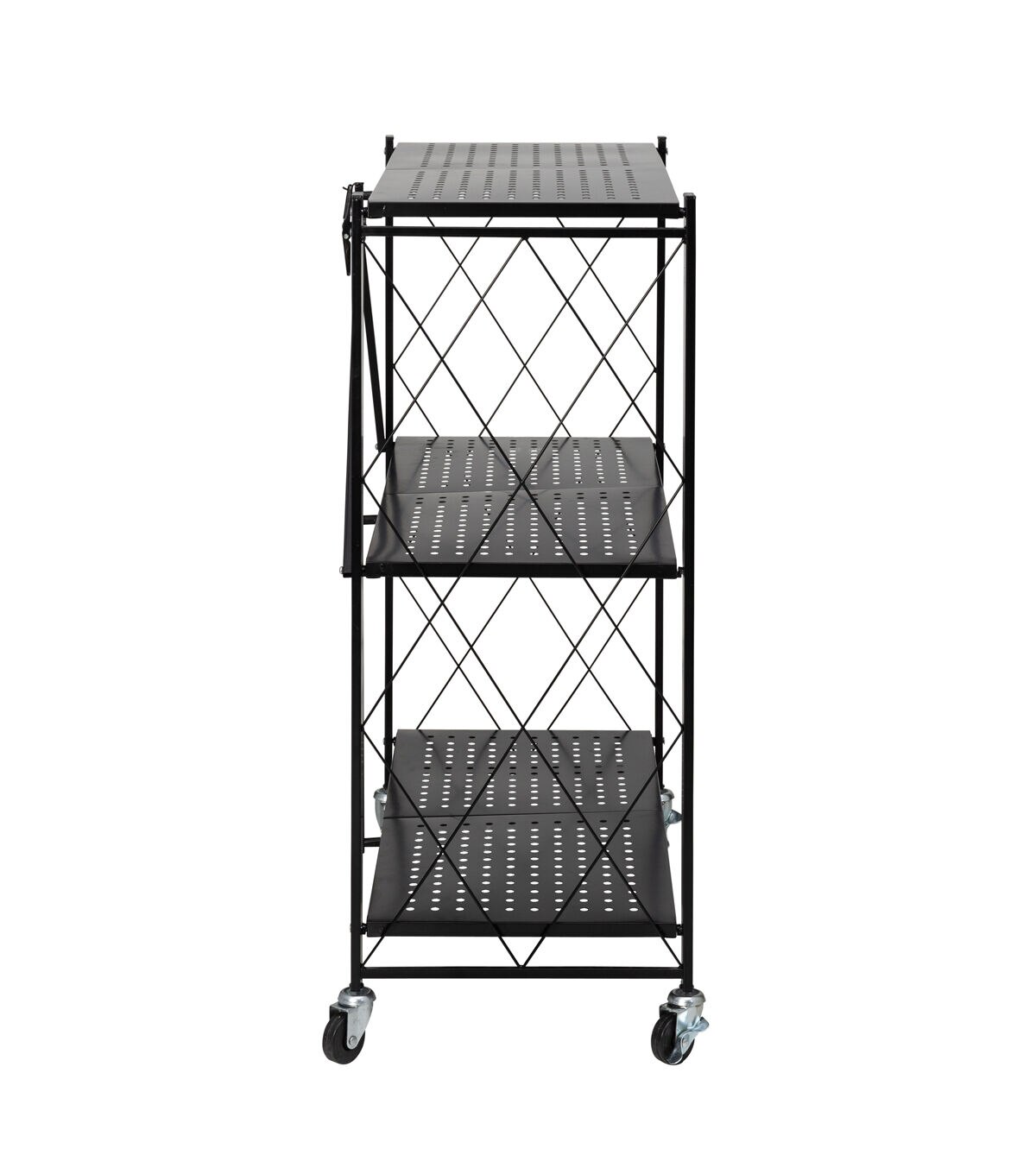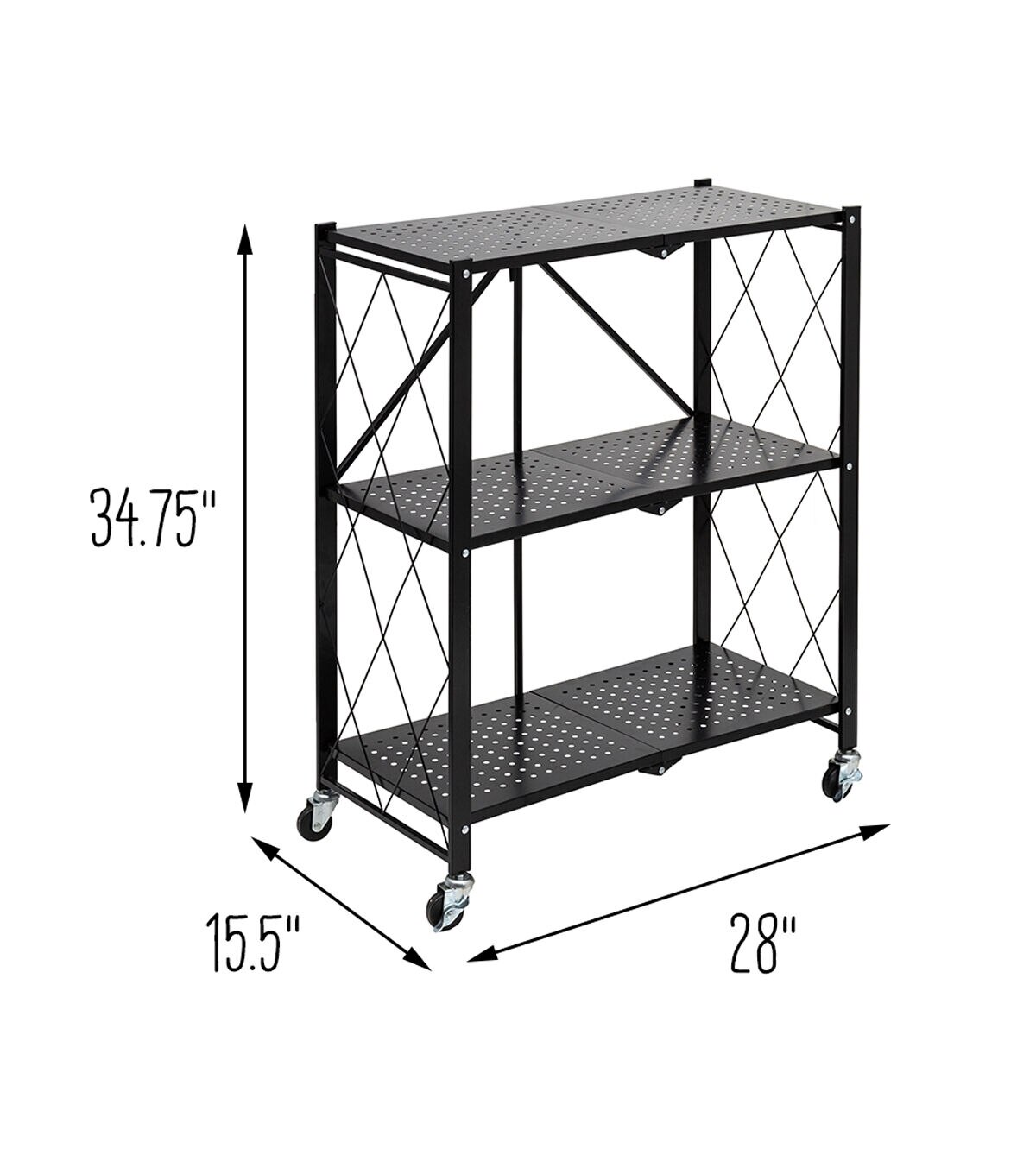 Honey Can Do 28 x 34.5 Black Folding 3 Tier Metal Rolling Shelf