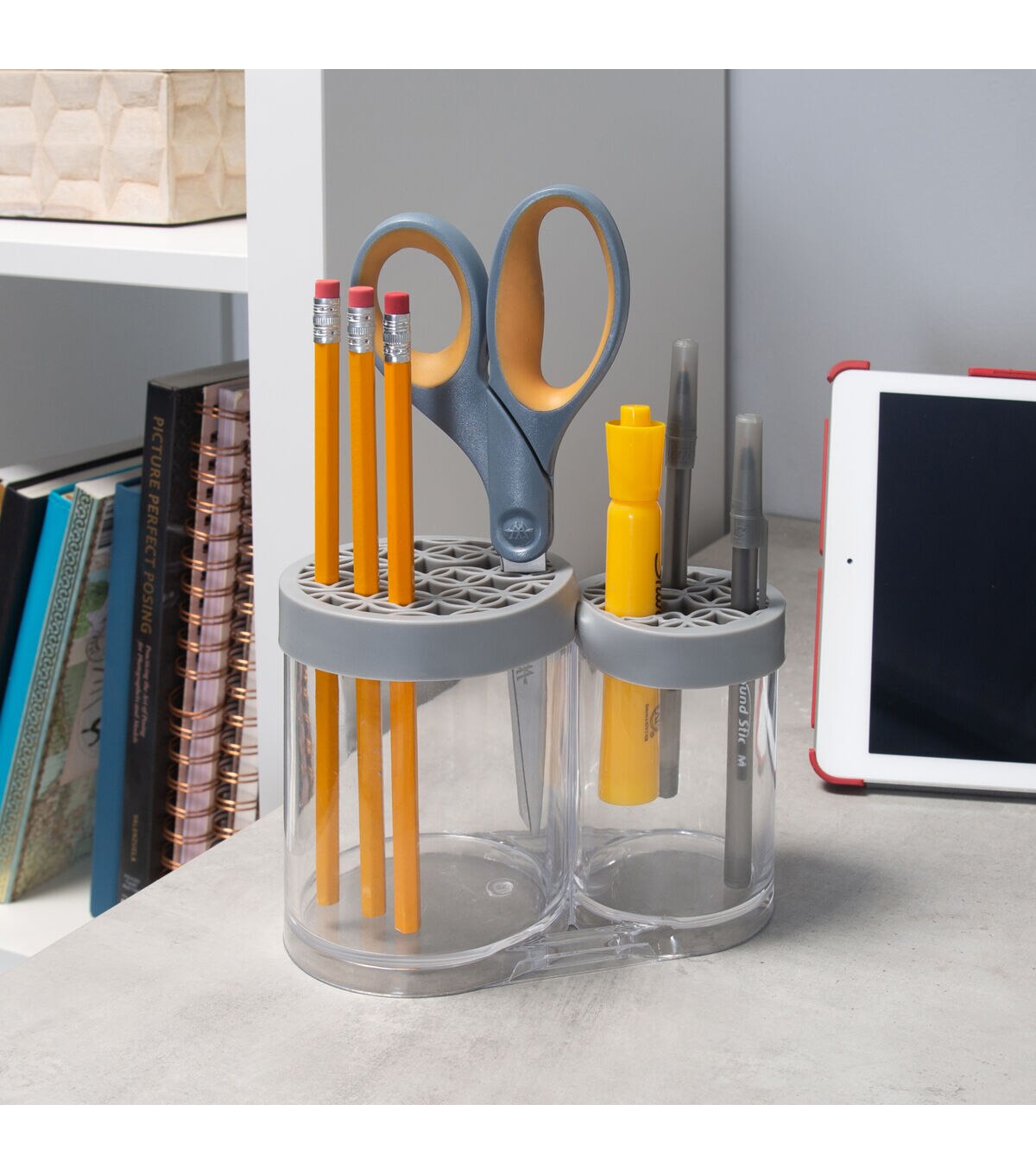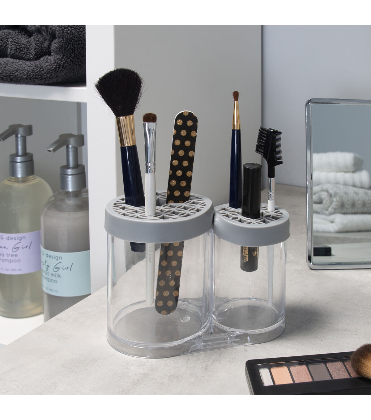 Simplify 6 Gray 2 Compartment Cosmetic Brush Holder