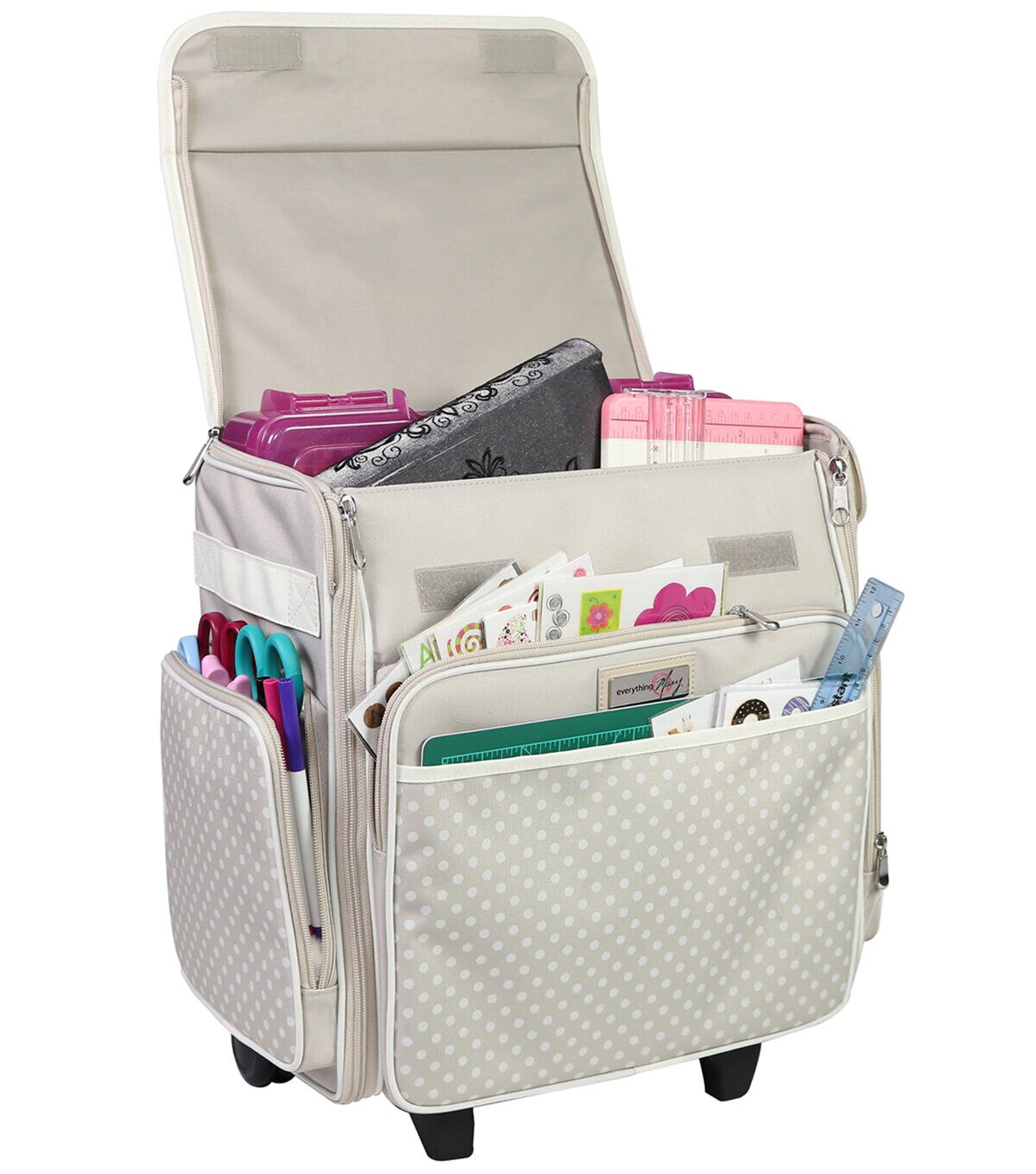 Everything Mary 16 Dots on Tan Collapsible Rolling Sewing Machine Case