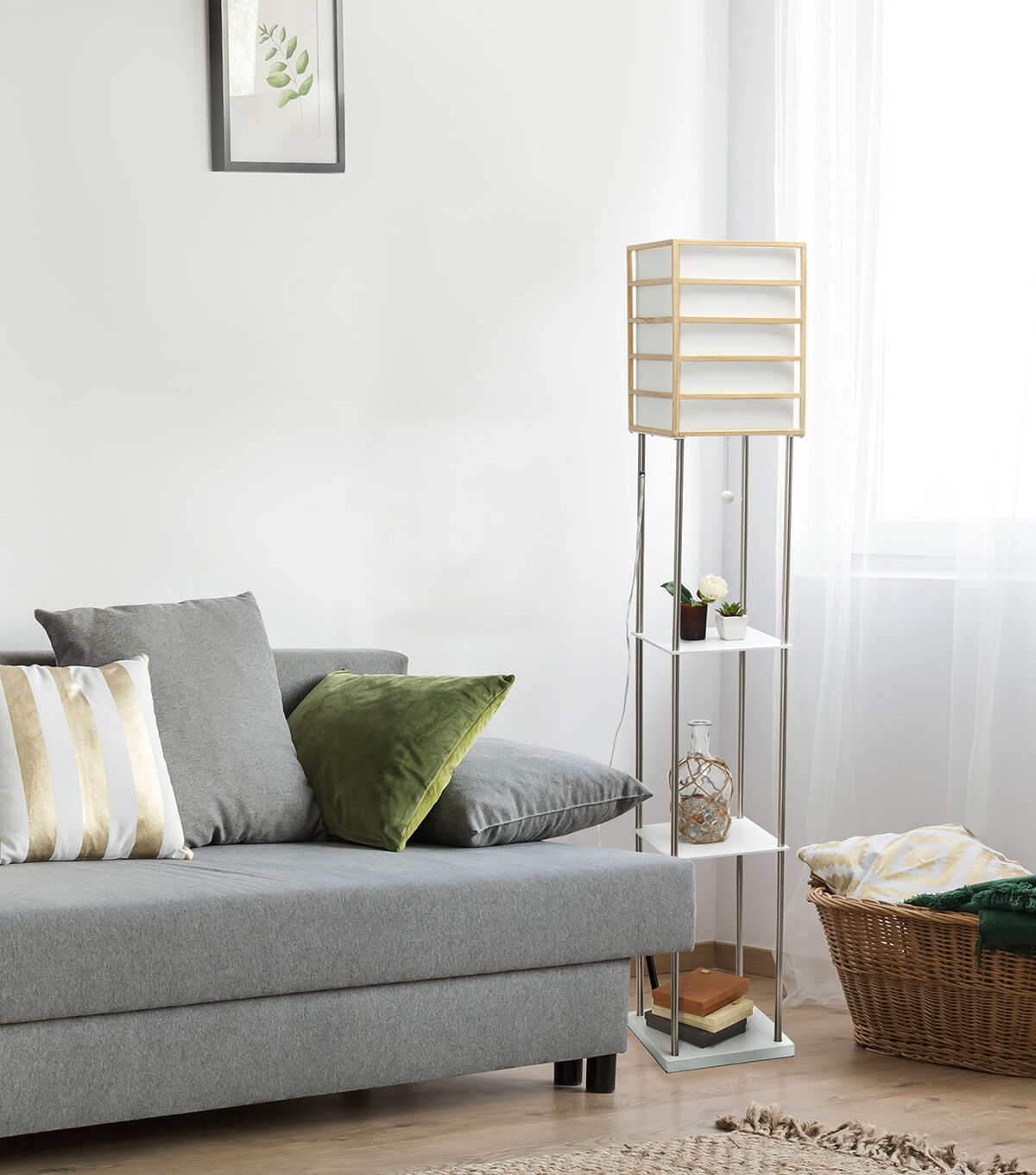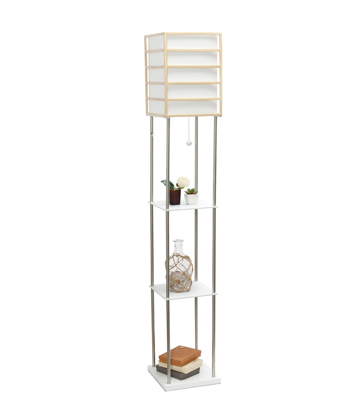All The Rages 1 Light Metal Floor Lamp with Storage Shelves Light Wood
