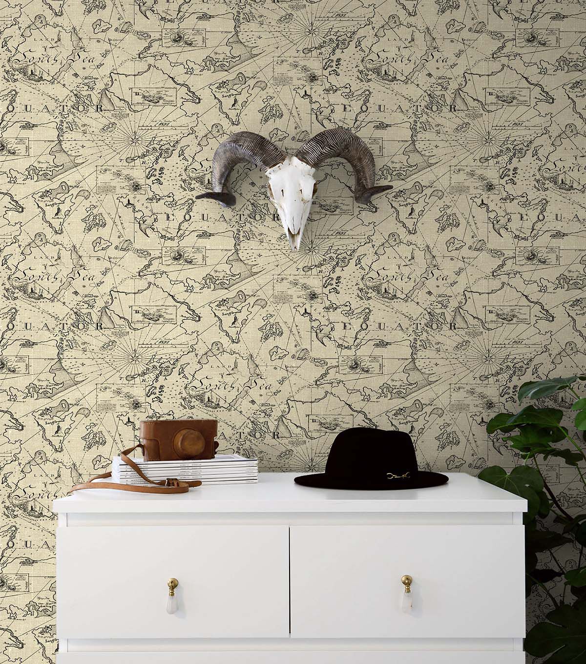 Tommy Bahama 20.5' x 18' Parchment Chartered Peel & Stick Wallpaper